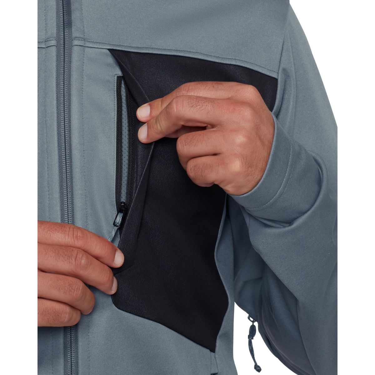 Die Jacke bietet durchdachte Details: einen 2?Wege?Frontreißverschluss mit Windpatte, eine Brusttasche sowie zwei Fronttaschen mit Reißverschluss und Unterarmreißverschlüsse zur Belüftung. Komfortable Daumenschlaufen halten die Ärmel an Ort und Stelle, und ein verstellbarer, reparaturfreundlicher Kordelzug am Saum ermöglicht einfache Anpassung und lange Nutzbarkeit.
