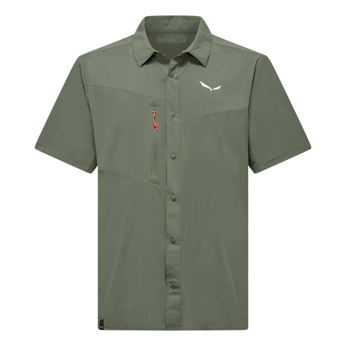 Praktische Details wie die Reißverschluss-Brusttasche, die Knopfleiste mit Druckknöpfen und der Kragen mit Knopfverschluss machen das Shirt funktional und alltagstauglich. Unterarmzwickel erhöhen die Bewegungsfreiheit beim Gehen und Klettern, sodass das Shirt aktiv deine Bewegungen unterstützt.