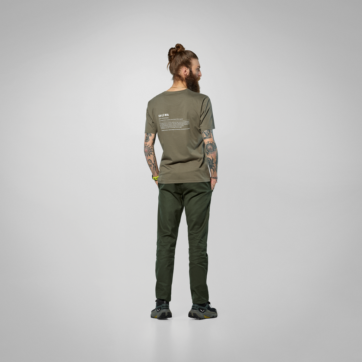 Das Eagle Vocab T-Shirt trägt das Salewa Committed-Label und erfüllt strenge Standards in Bezug auf chemische Sicherheit und soziale Verantwortung. Die verwendeten Tencel Lyocell Fasern stammen aus nachhaltiger Forstwirtschaft, und auch die Baumwolle kommt ohne schädliche Zusatzstoffe aus. So unterstützt du mit deinem Kauf umweltfreundliche Produktionsbedingungen und faire Arbeitspraktiken.