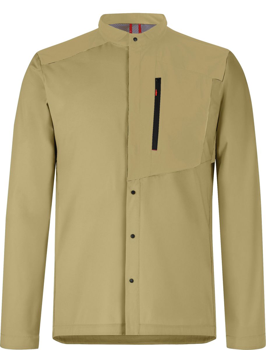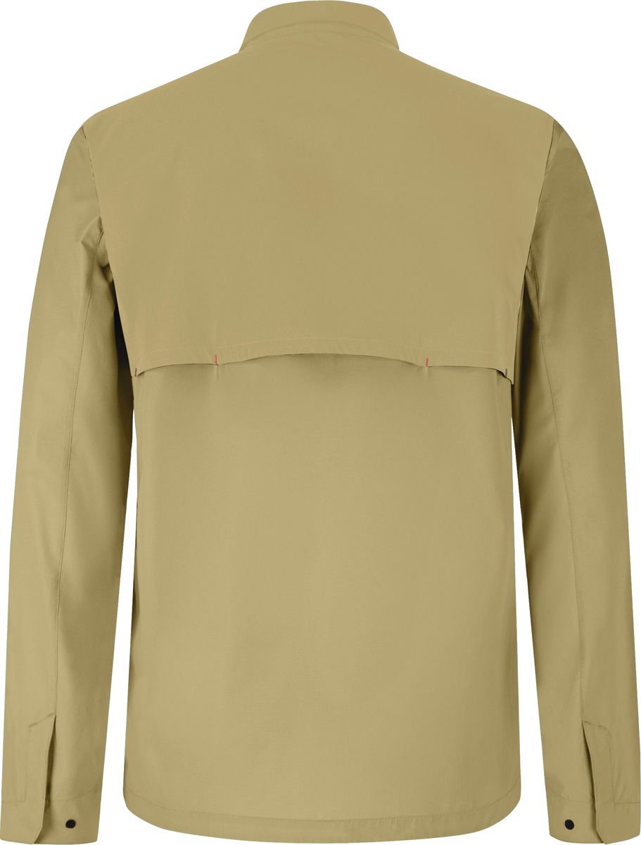 Das Shirt verfügt über eine abnehmbare Kapuze, eine verschließbare Brusttasche, eine offene Innentasche und eine Knopfleiste vorne. Das doppelte Carré mit Belüftungsöffnung sorgt gezielt für Luftaustausch, während Ärmelabschlüsse mit Knöpfen zusätzlichen Sitzkomfort bieten.