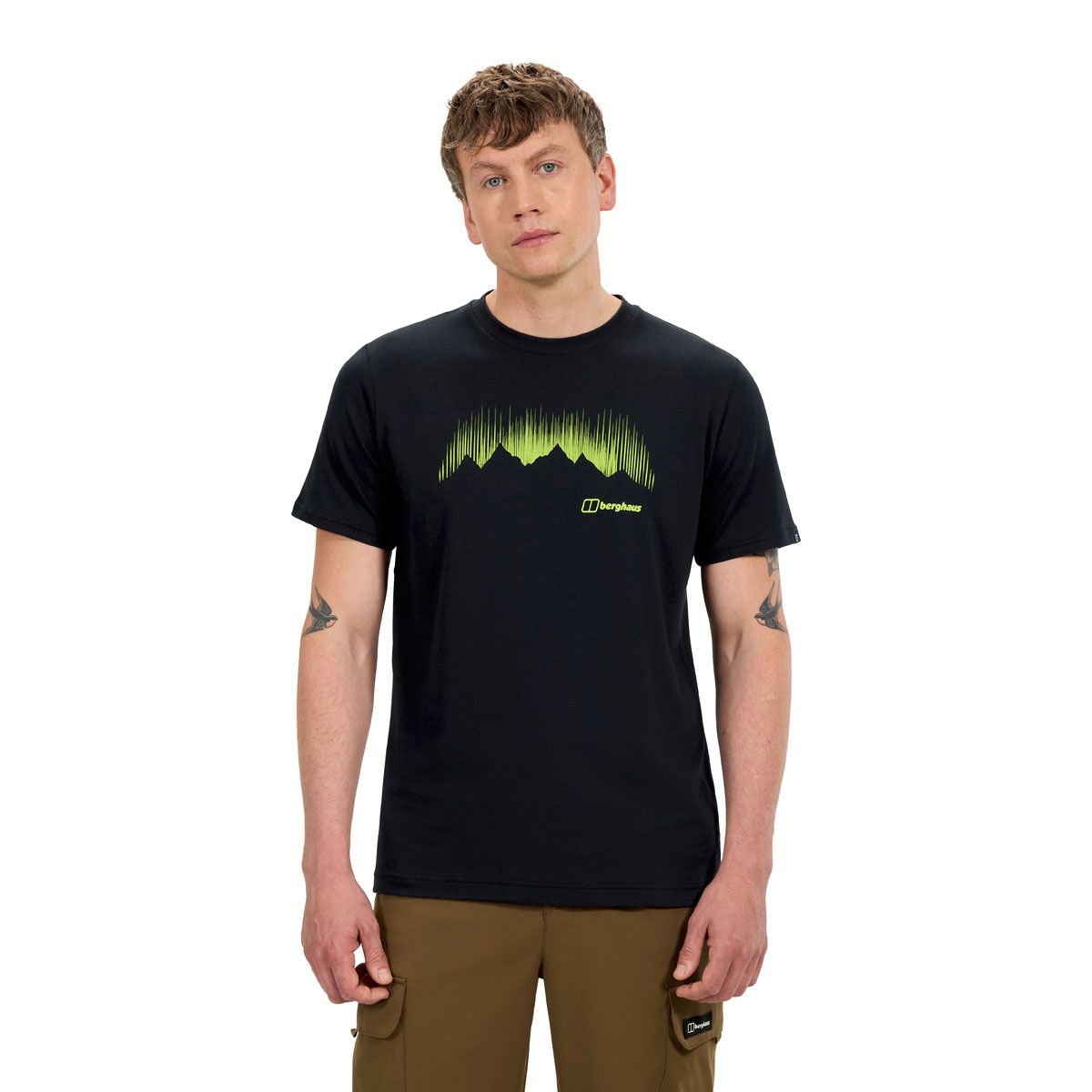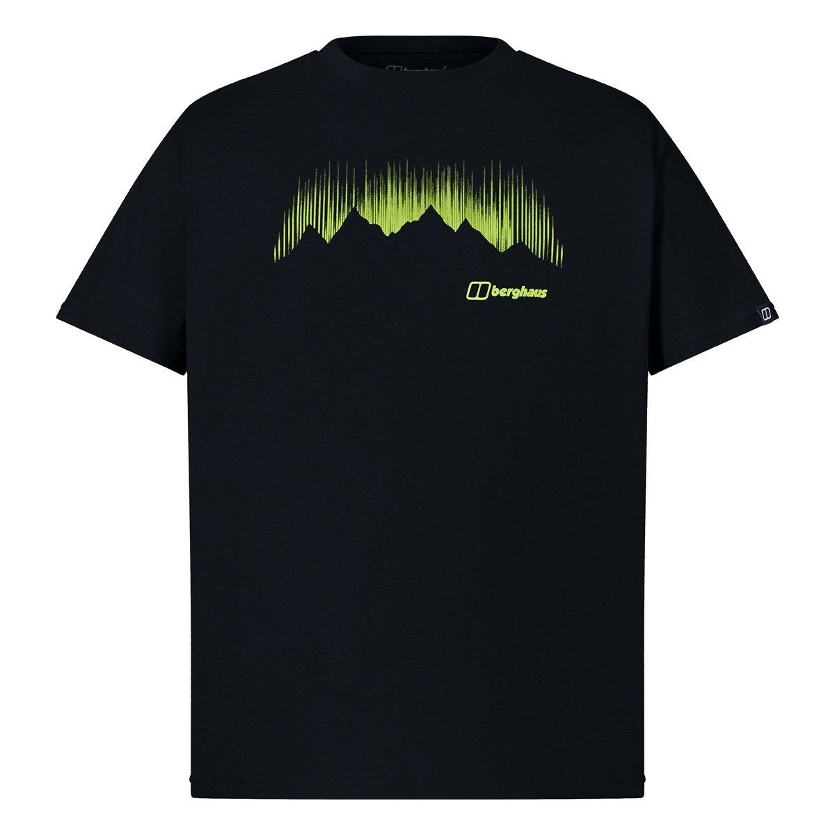 Der auffällige Grafikdruck kombiniert Polarlichter mit Bergsilhouette und bringt Outdoor-Feeling in deinen Alltag. Das Design passt genauso gut zur Freizeit wie zu entspannten Wochenendtouren.