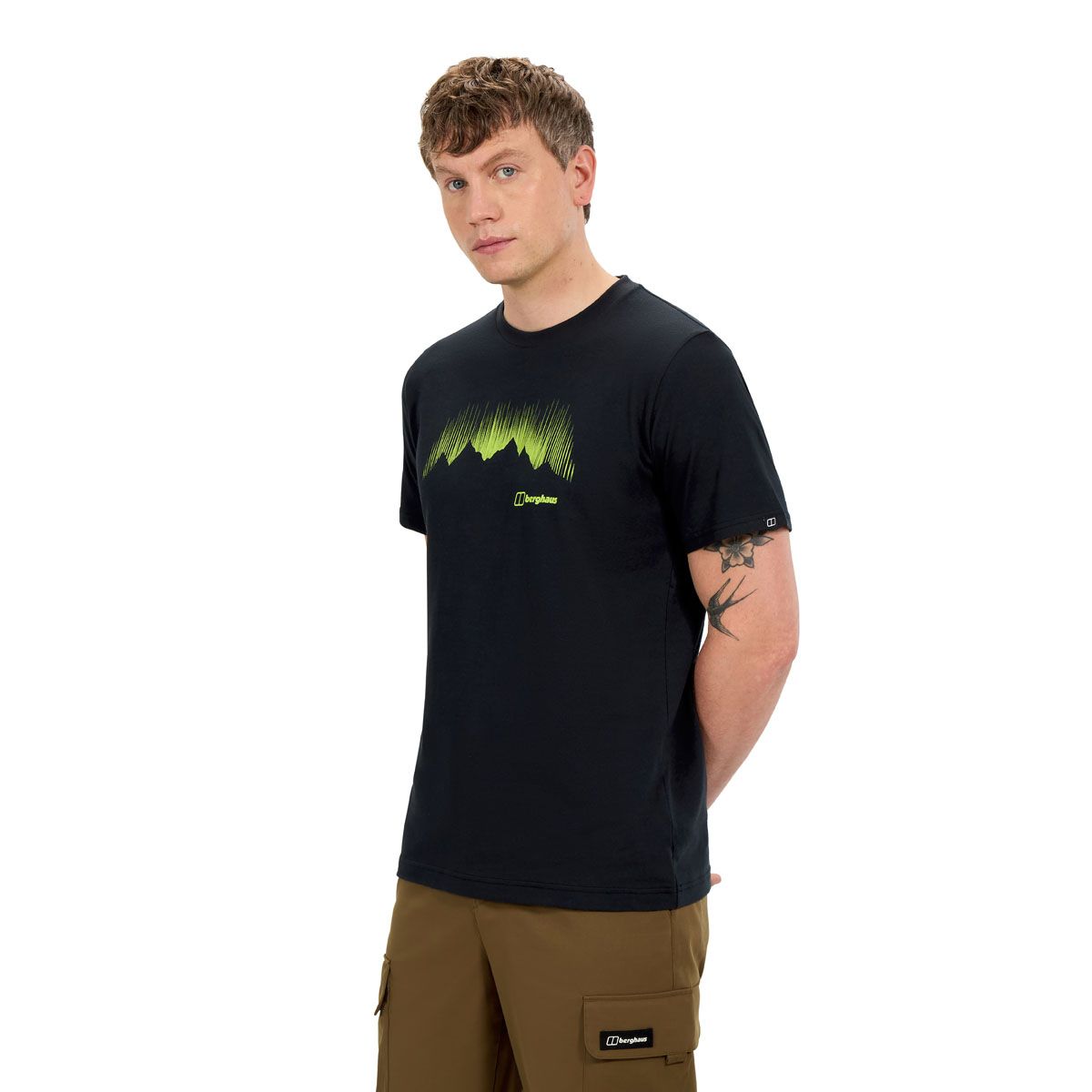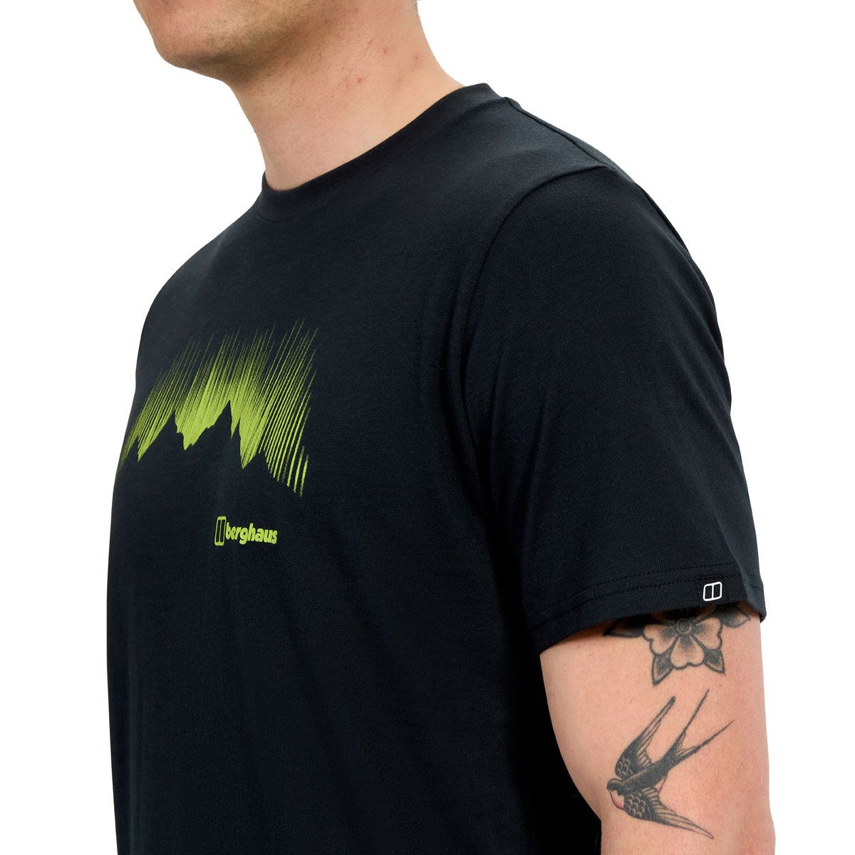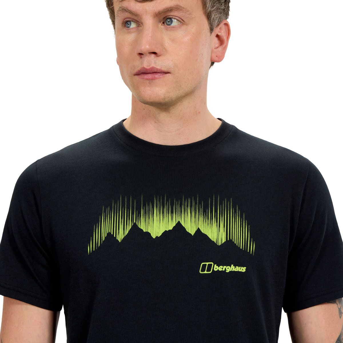 Der Print mit Polarlichtern und Bergsilhouette verleiht dem Shirt einen abenteuerlichen Charakter, ohne aufdringlich zu wirken. Mit einem Gewicht von circa 210 g (Größe UK L) bietet es eine angenehm robuste, aber weiche Haptik.