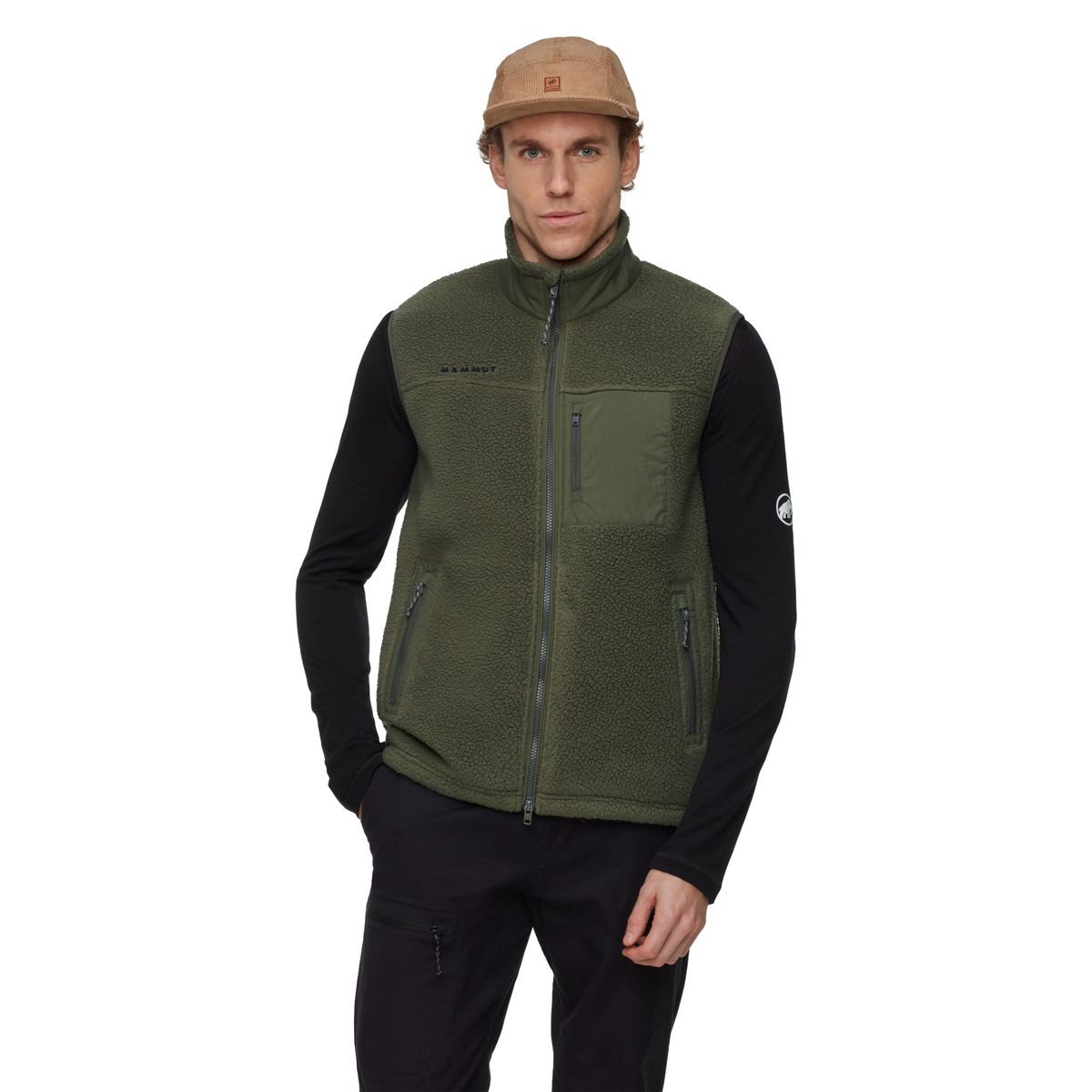 Mammut setzt bei diesem Modell auf faire Produktionsbedingungen (Fair Wear) und verwendet recycelte Materialien im Futter. Für lange Lebensdauer empfehlen sich schonende Waschzyklen und Vermeidung von Weichspüler, um die Funktionalität des Fleeces zu erhalten.