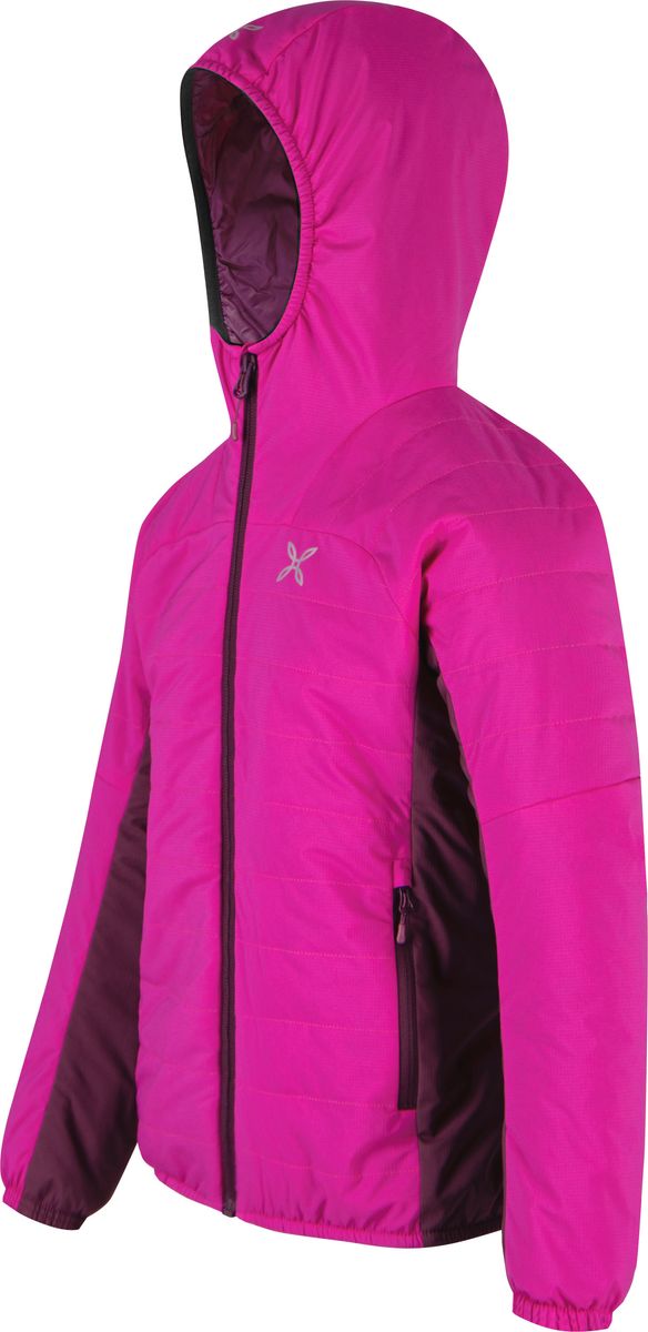 Die leichte Wattierung hält zuverlässig warm, auch wenn die Isolierung feucht wird, und ermöglicht aktive Bewegung ohne zu beschweren. Kapuze, elastische Bündchen und Saum sorgen für guten Sitz und schützen vor Zugluft.