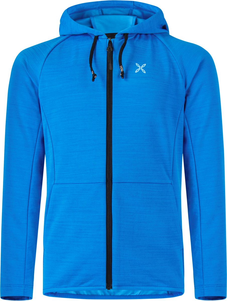 Die Jacke hat eine Kapuze, einen zentralen Frontreißverschluss und offene Handtaschen - praktische Details für schnellen Temperaturausgleich und Stauraum. Der elastische Saum sorgt für einen sicheren Sitz bei Bewegung, ohne einzuengen.