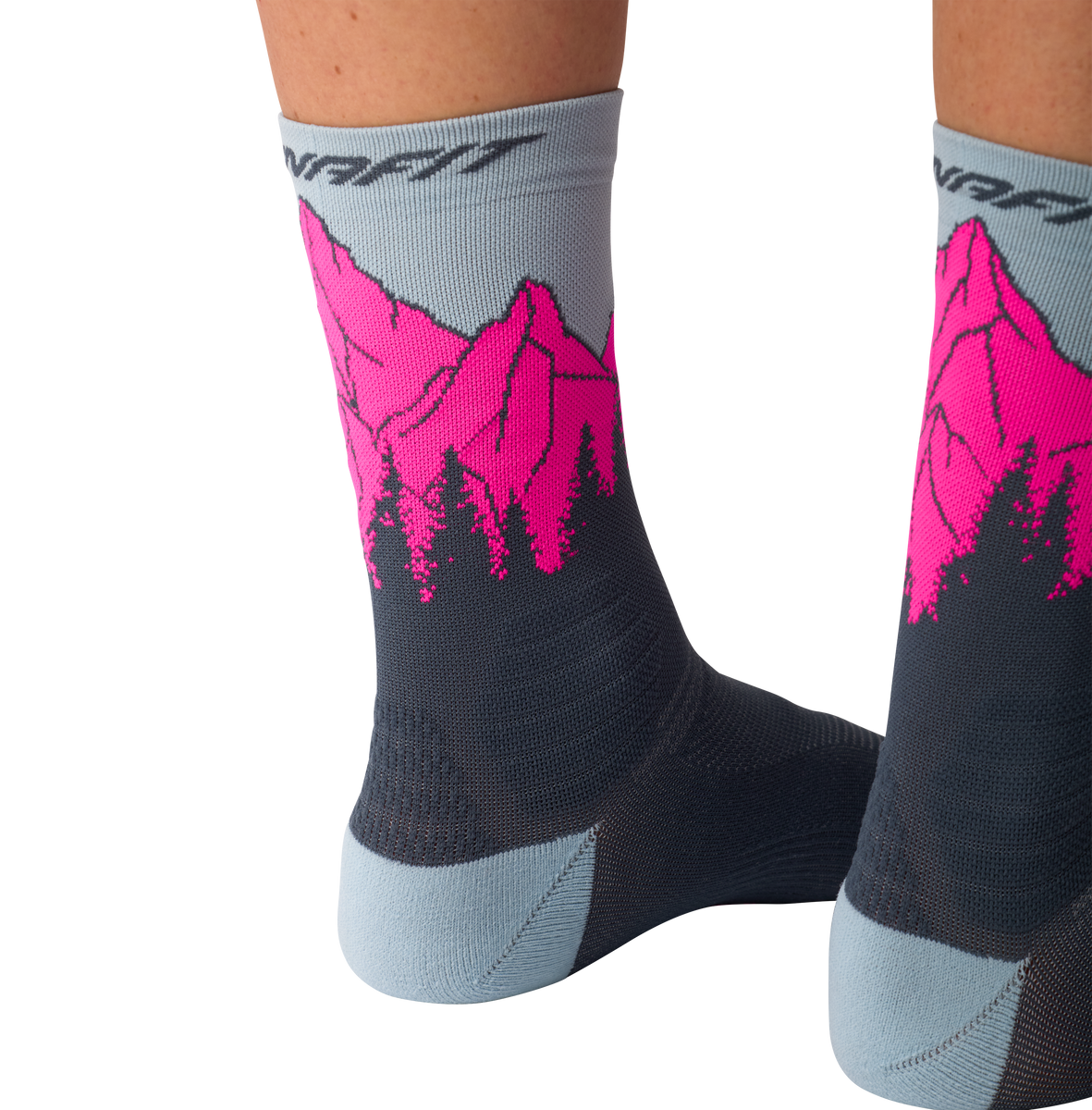 Die Traverse Crew Socken von Dynafit sind für schnelle Bergtouren entwickelt worden und verbinden leichte Konstruktion mit funktionaler Ausstattung. Sie bieten einen sicheren Sitz, gezielte Polsterungen und großflächige Mesh-Bereiche, die für ein ausgeglichenes Fußklima sorgen.