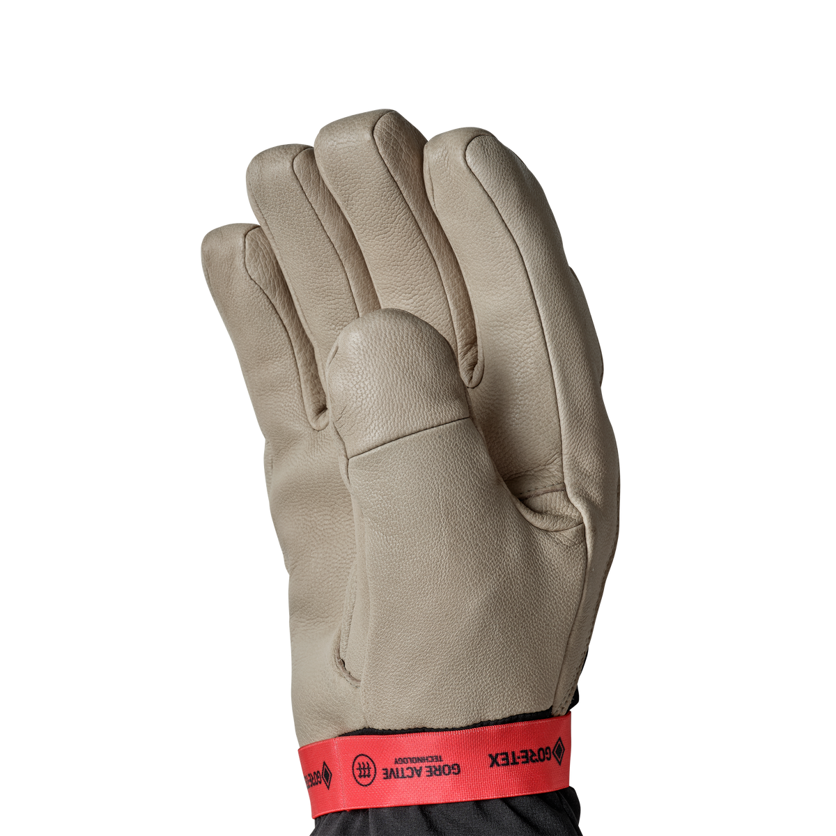 Die Innenhand und die Fingerpartie bestehen aus hochwertigem Ziegenleder, das nicht nur robust, sondern auch langlebig ist. Das griffige Leder sorgt für optimalen Halt beim Griff ins Karabiner, beim Eisklettern oder beim Einfädeln von dünnen Seilen.