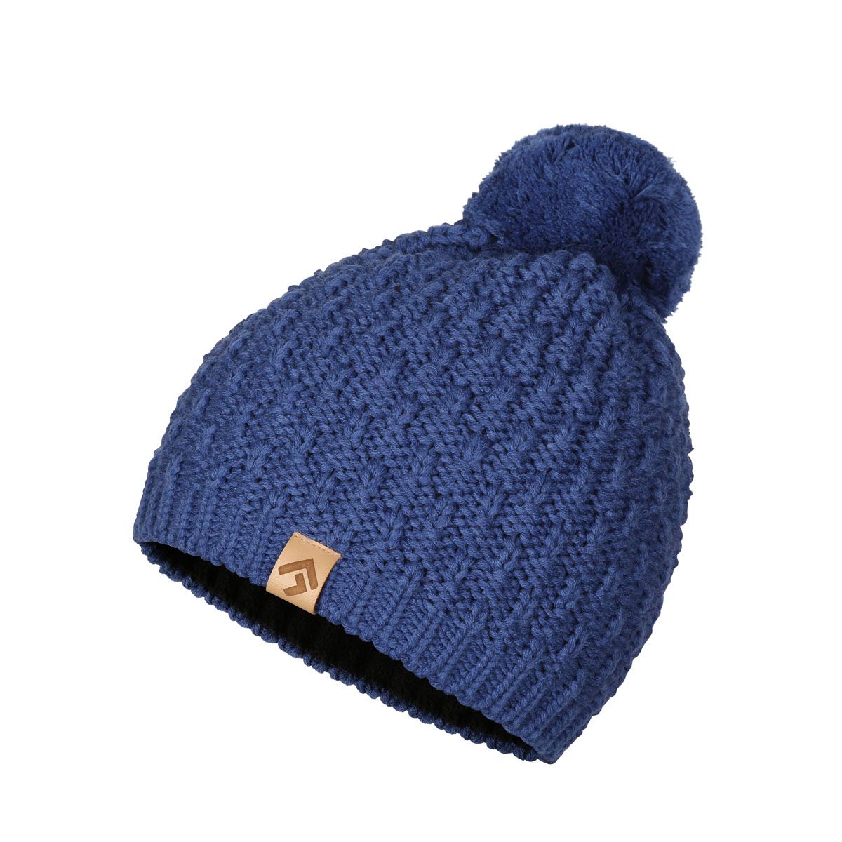 Strickmütze mit Bommel für einen klassischen, sportlichen Stil, innen mit Fleece gefüttert für zusätzliche Isolierung. Das Material ist synthetisch, was die Mütze pflegeleicht und formstabil macht.