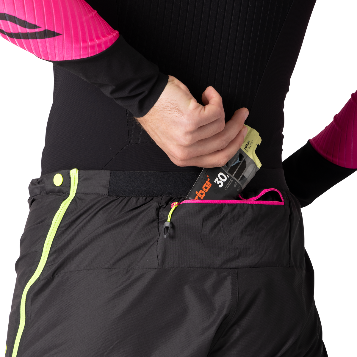 Wenn Du die Hose während des Rennens nicht benötigst, kannst Du sie einfach komprimiert in einer integrierten Tasche auf der Rückseite verstauen. Dies macht sie zu einem unverzichtbaren Begleiter für jede Skimountaineering-Wettkampf-Ausrüstung.
