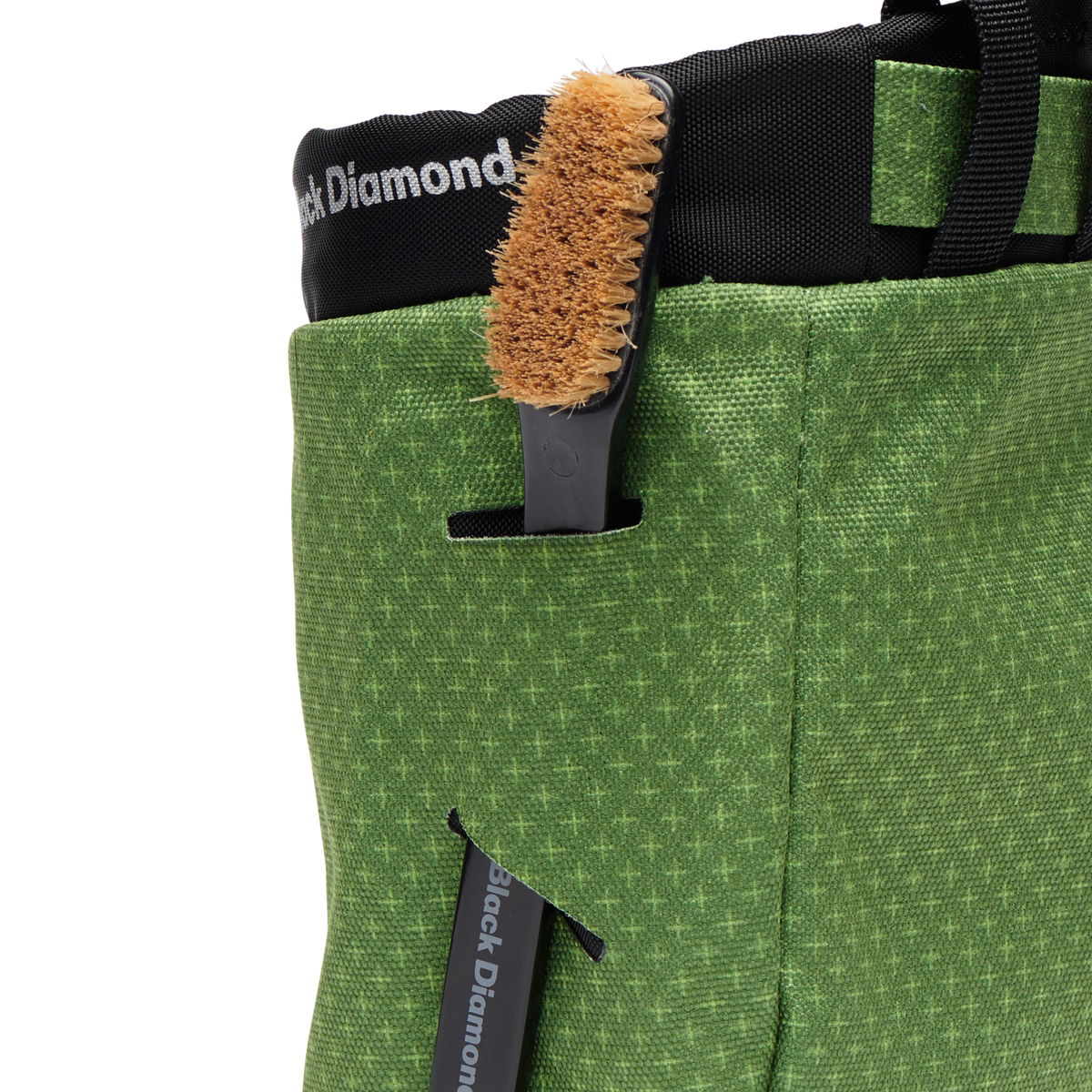 Ein Bürstenhalter ist ebenfalls integriert, sodass du deine Boulderbürste immer dabei hast. Damit kannst du Griffe schnell und einfach von Chalk- oder Schmutzresten befreien, um für einen besseren Halt zu sorgen. Alles ist an Ort und Stelle und leicht zugänglich, was jeden Klettertag entspannter macht.