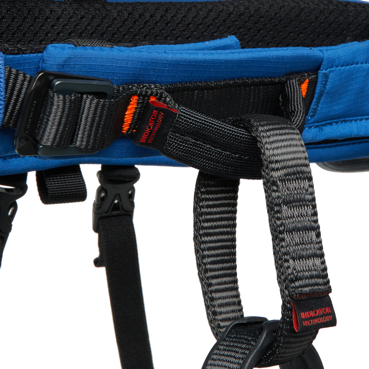 Der Gurt verfügt über verschleißanzeigende Elemente an Hüft- und Beingurtösen sowie an der Einbindeschlaufe, damit du den Zustand deines Gurts besser beurteilen kannst. Die Einbindeschlaufe ist mit einem hochwertigen Kunststoffschutz und Abriebschutz versehen, die Nachziehschlaufe ist extrem belastbar (1 kN) und die Materialschlaufen sind auf bis zu 20-25 kg ausgelegt.