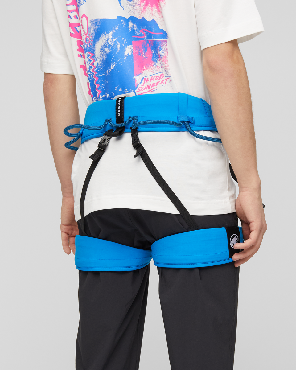 Die Split-Webbing-Technologie verteilt das Gewicht gleichmäßig auf Hüfte und Beinschlaufen und reduziert Druckstellen - besonders angenehm beim Hängestand oder längeren Sicherungspausen.
