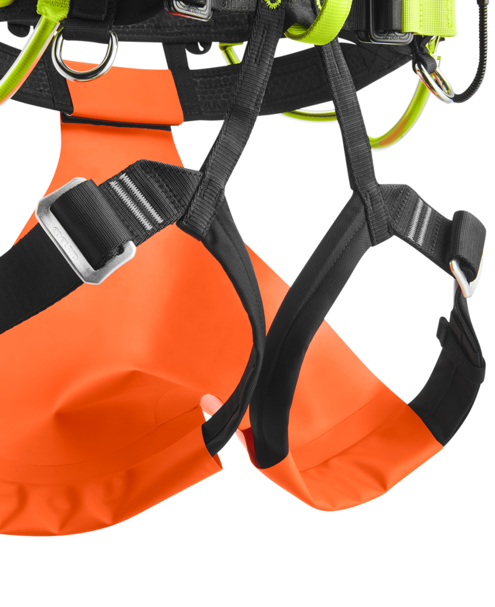 Innovativer Canyoninggurt für Guides und Privatanwender*innen mit austauschbarem Abriebschutz und Verschleißindikatorbändern. Die zwei Einbindepunkte (Textil + Metall) bieten die Möglichkeit sich sowohl horizontal als auch vertikal einzubinden, bspw. für die Trennung von Abseilgerät und Selbstsicherung. Zwei weitere Metall-Einbindepunkte bspw. für den Seilsack, vier große Materialschlaufen sowie Befestigungsmöglichkeiten für Messer und Materialkarabiner runden die Ausstattung ab. Verbesserter Komfort dank des gesplitteten Zwei-Band-Systems am Hüftgurt.