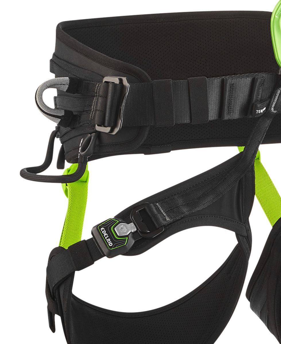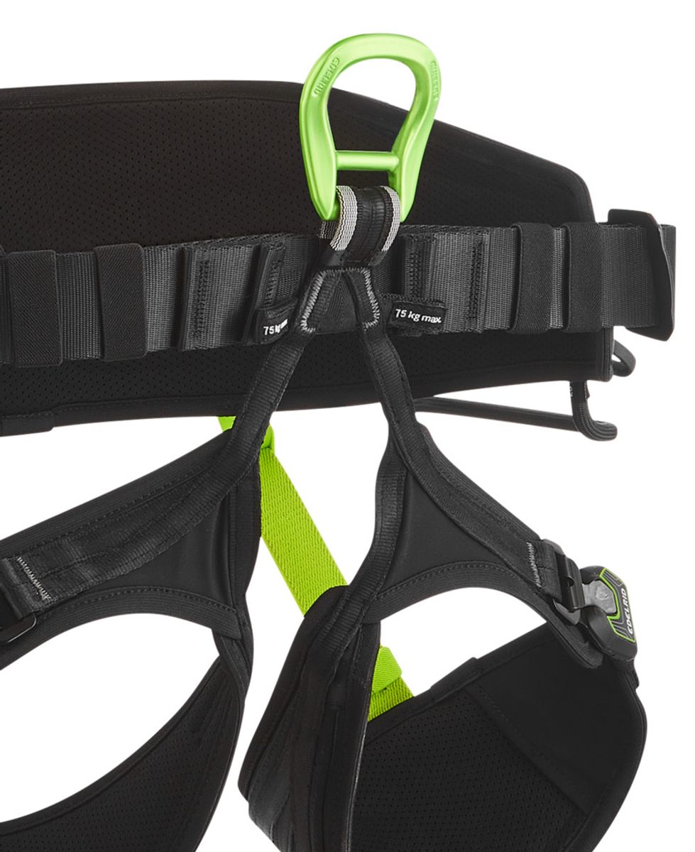 Eine zentrale Öse nach EN 813 erlaubt das Einhängen von Abseilgeräten; zwei zentrale Schlaufen dienen der Befestigung eines Sitzbrettes (Air Lounge). Seitliche, senkrecht ausgerichtete Textilösen orientieren sich an klassischen Metallösen und erweitern die Montageoptionen.