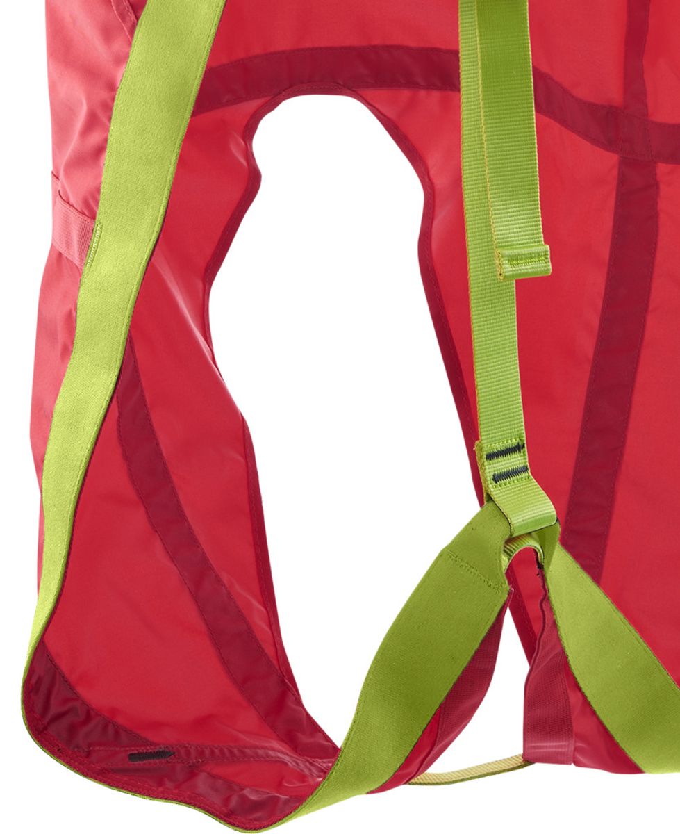 Die ergonomische Schnittführungsichert eine korrekte, aufrechte Hängeposition. Die Größeneinstellung erfolgt einfach über einen Klettverschluss, sodass das System schnell für Erwachsene und Kinder justiert werden kann.