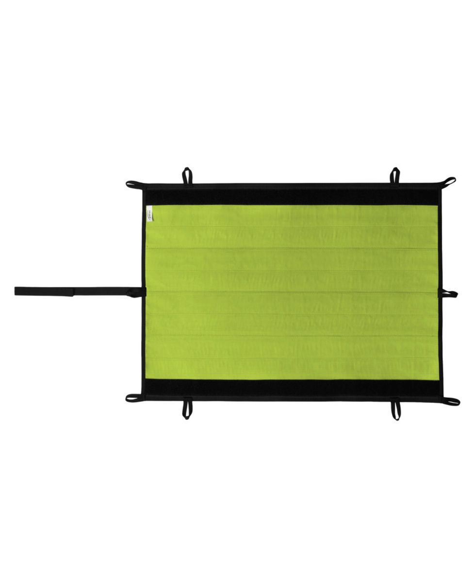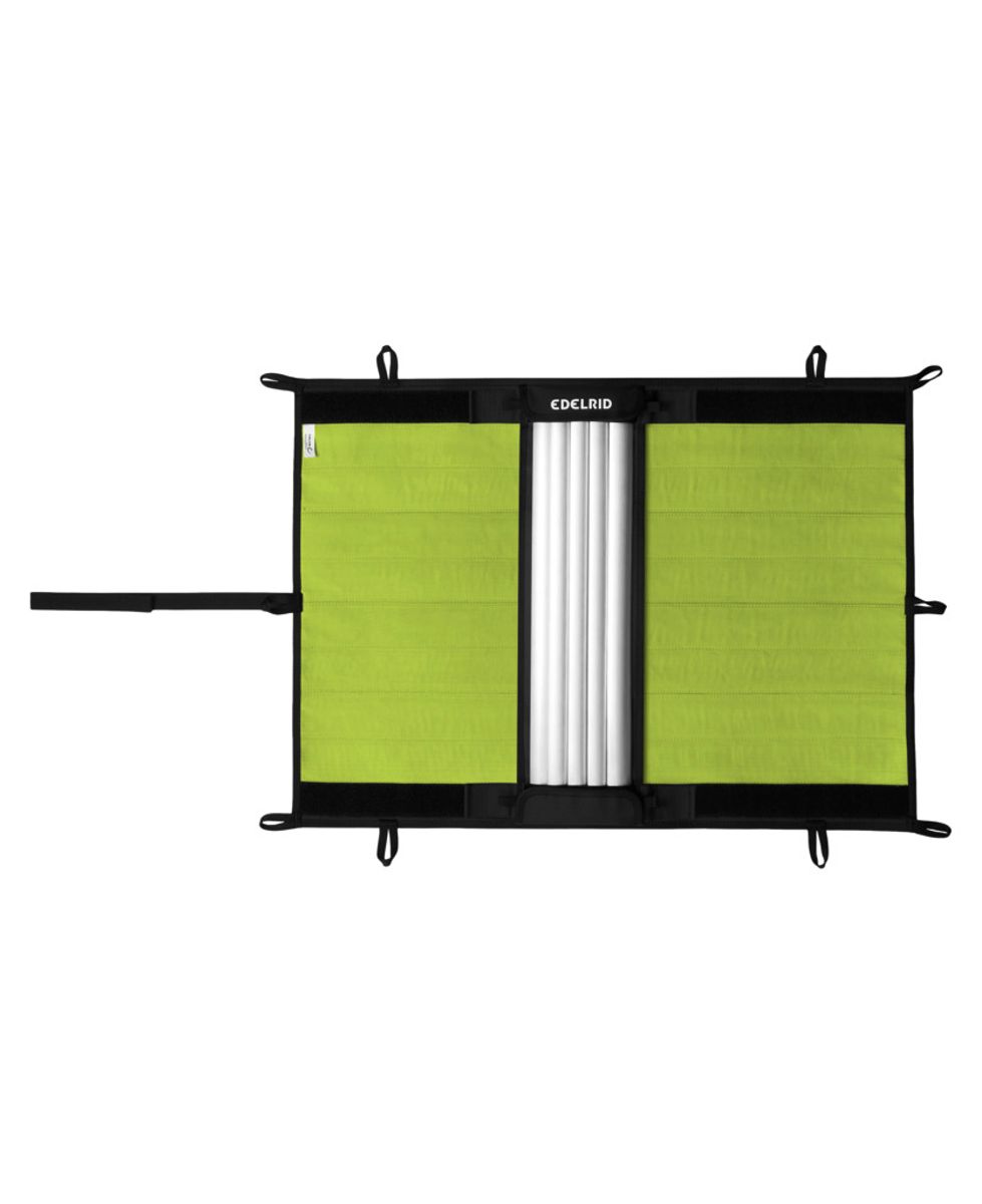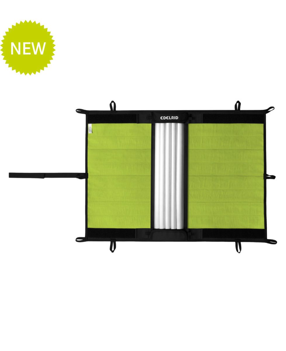 Die Alu-Rippen werden einfach per Klettverschluss in der Halterung auf der Matte positioniert. Du kannst die Matte schnell an Strukturen fixieren oder als Schlauch um das Seil legen, je nach Bedarf und Gefahrenstelle.