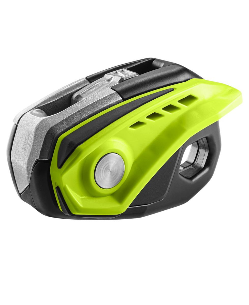 Die Anti-Panikfunktion reduziert das Risiko unkontrollierter Abseilfahrten und kann bewusst ausgelöst werden, um die Bedienrichtung des Hebels umzudrehen. Ein Vier-Wege-Sicherheitsverschluss ermöglicht das Einlegen des Seils, ohne das Gerät vom Karabiner zu trennen, und das große Karabinerloch erlaubt eine 360°-Drehung.