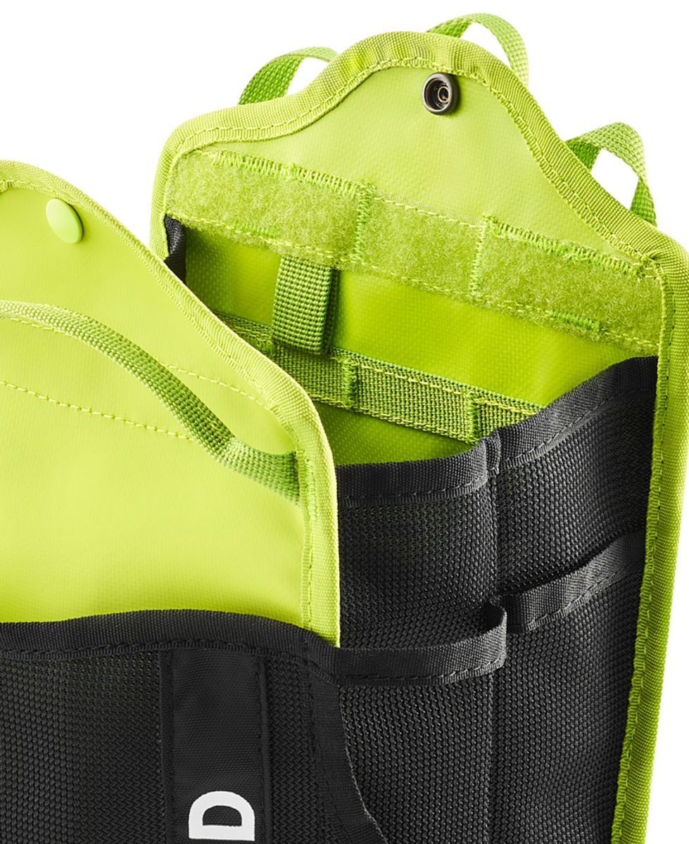 Die Tasche verfügt über einen Klettverschluss für sofortigen Zugriff auf den Inhalt. Zusätzlich sorgt ein Druckknopf für ein gesichertes Verschlusssystem, damit nichts ungewollt herausfällt - ideal bei hektischen Arbeitssituationen.