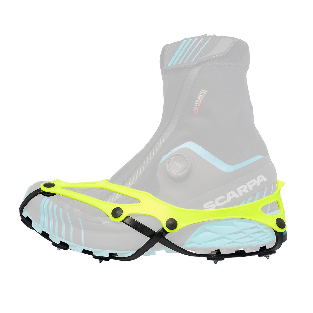 Dank des modularen Aufbaus lassen sich die Stahlspitzen bei Bedarf schnell wechseln. So hast du jederzeit die volle Performance auf harten Schneedecken und vereisten Flächen. Die Konstruktion wurde in Italien entwickelt und geprüft, um deinen Ansprüchen im urbanen Winterrunning gerecht zu werden.