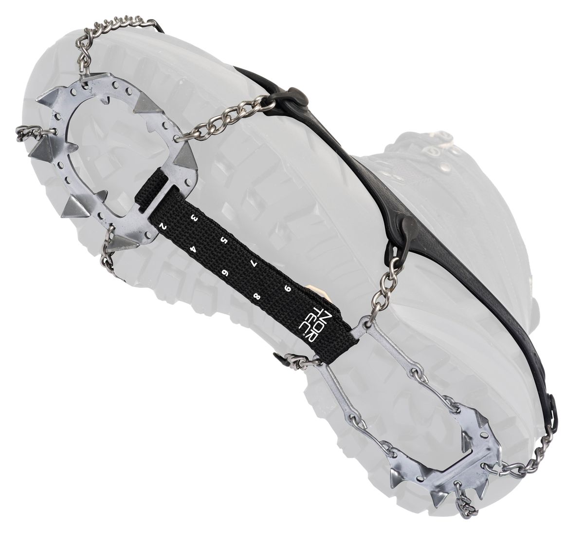 - Neue Verbindungselemente zwischen Elastomer und Mikro-Steigeisen sorgen für besseren Sitz und ermöglichen einen Austausch des Elastomers bei Beschädigung.