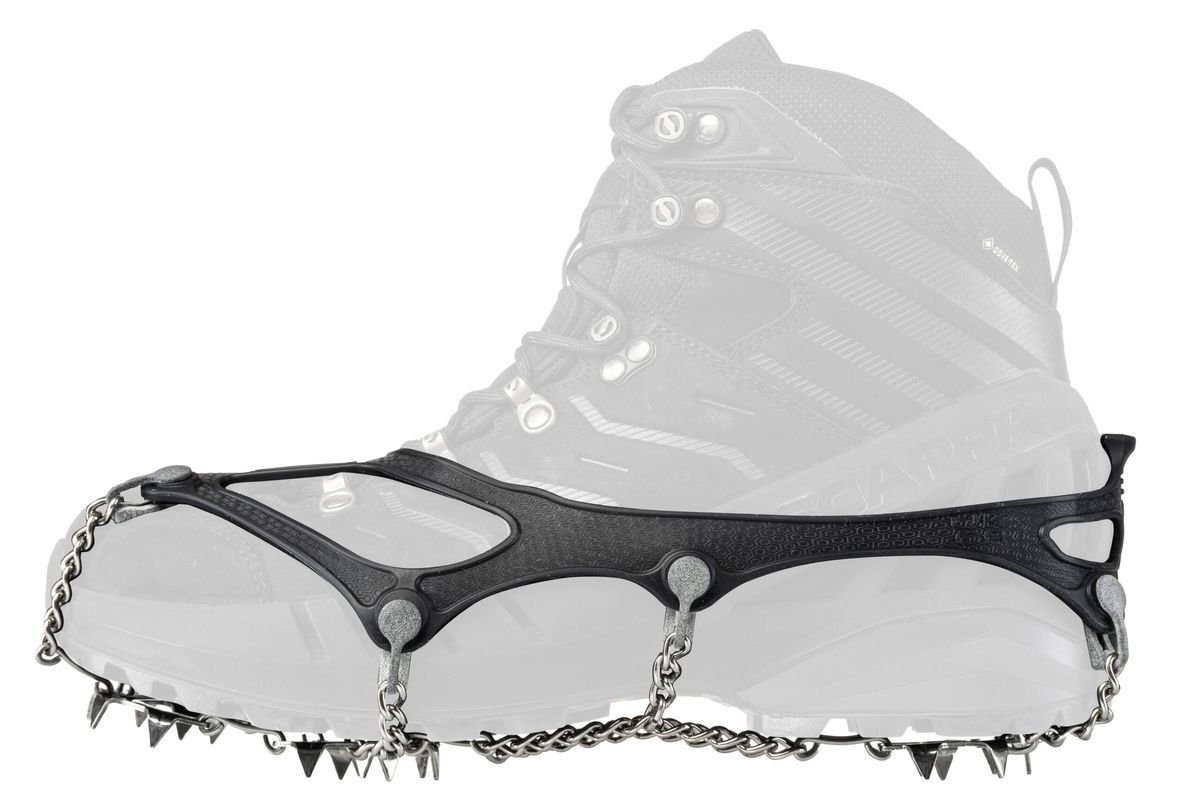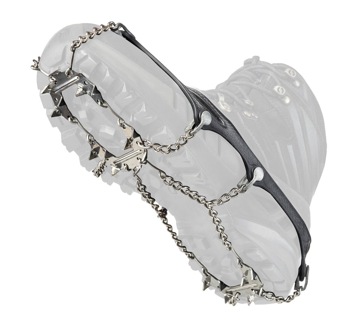 Die Kombination aus Kettenelementen und wärmebehandelten Edelstahlplatten bietet dir exzellenten Halt auf Eis, hartem Schnee und matschigen Untergründen. 21 stahlharte Spitzen greifen zuverlässig in jede Oberfläche und sorgen für sicheren Tritt.