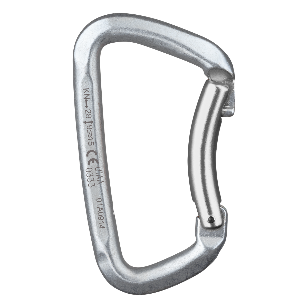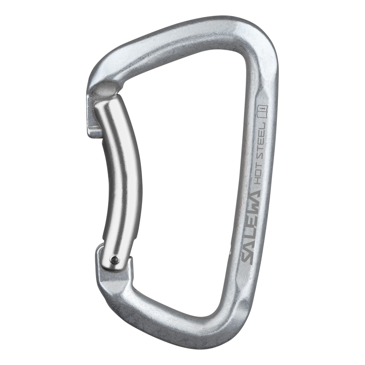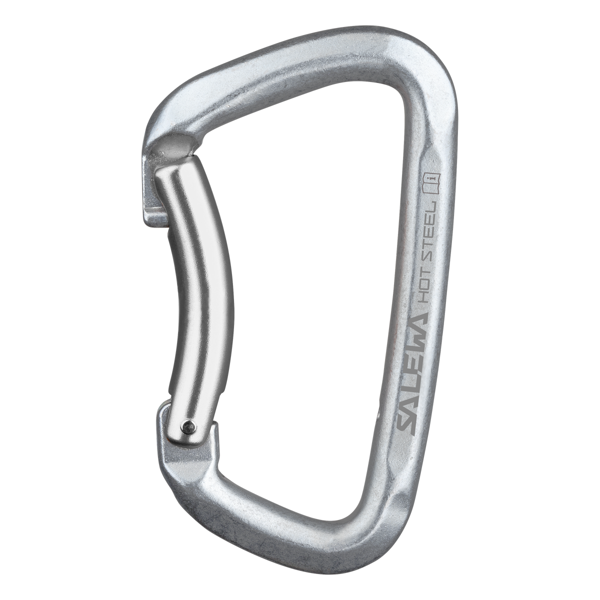 Stahlkarabiner speziell für fixe Zwischensicherungen an Kletterwänden aus dem Hause Salewa.