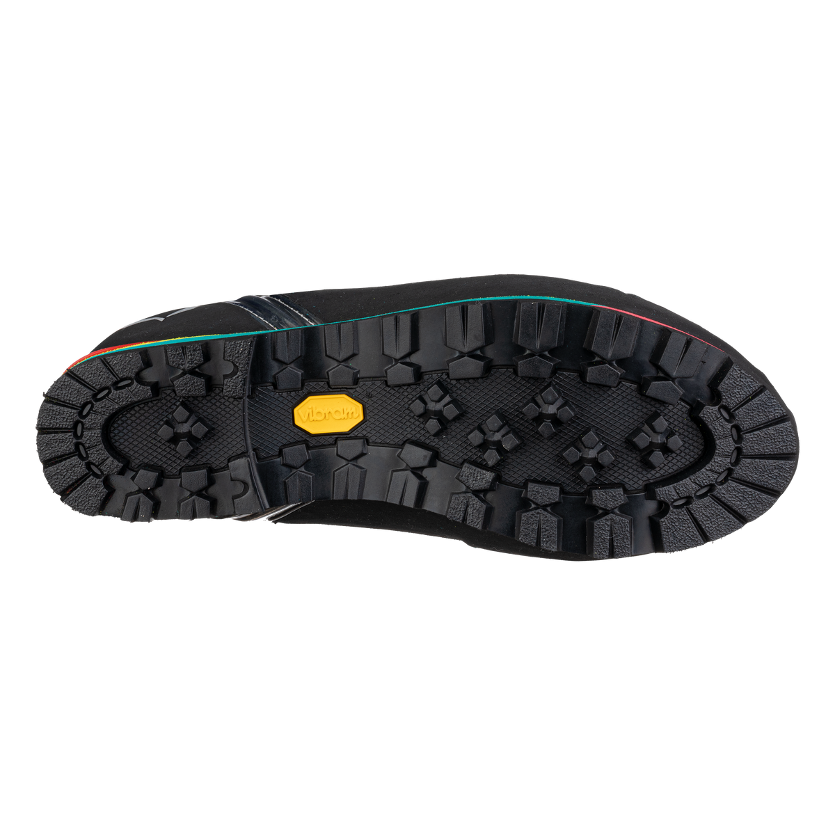 Unter dem Fuß sorgt die Vibram Teton Außensohle mit selbstreinigendem Profil für sicheren Grip auf Felsen und Halt auf matschigen, grasigen oder verschneiten Flächen. Die eingeschnittene Ferse und hohe Stollen verbessern Bremsverhalten und Traktion beim Abstieg.