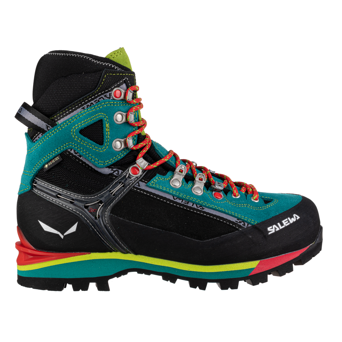 Salewa setzt auf das eigene 3F-System für Flexibilität, Fersenhalt und einen präzisen Sitz. Die 3D- bzw. Climbing-Lacing-Schnürung ermöglicht eine feine Abstimmung im Zehen- und Mittelfußbereich, wodurch du blasenfreier und kontrollierter unterwegs bist.