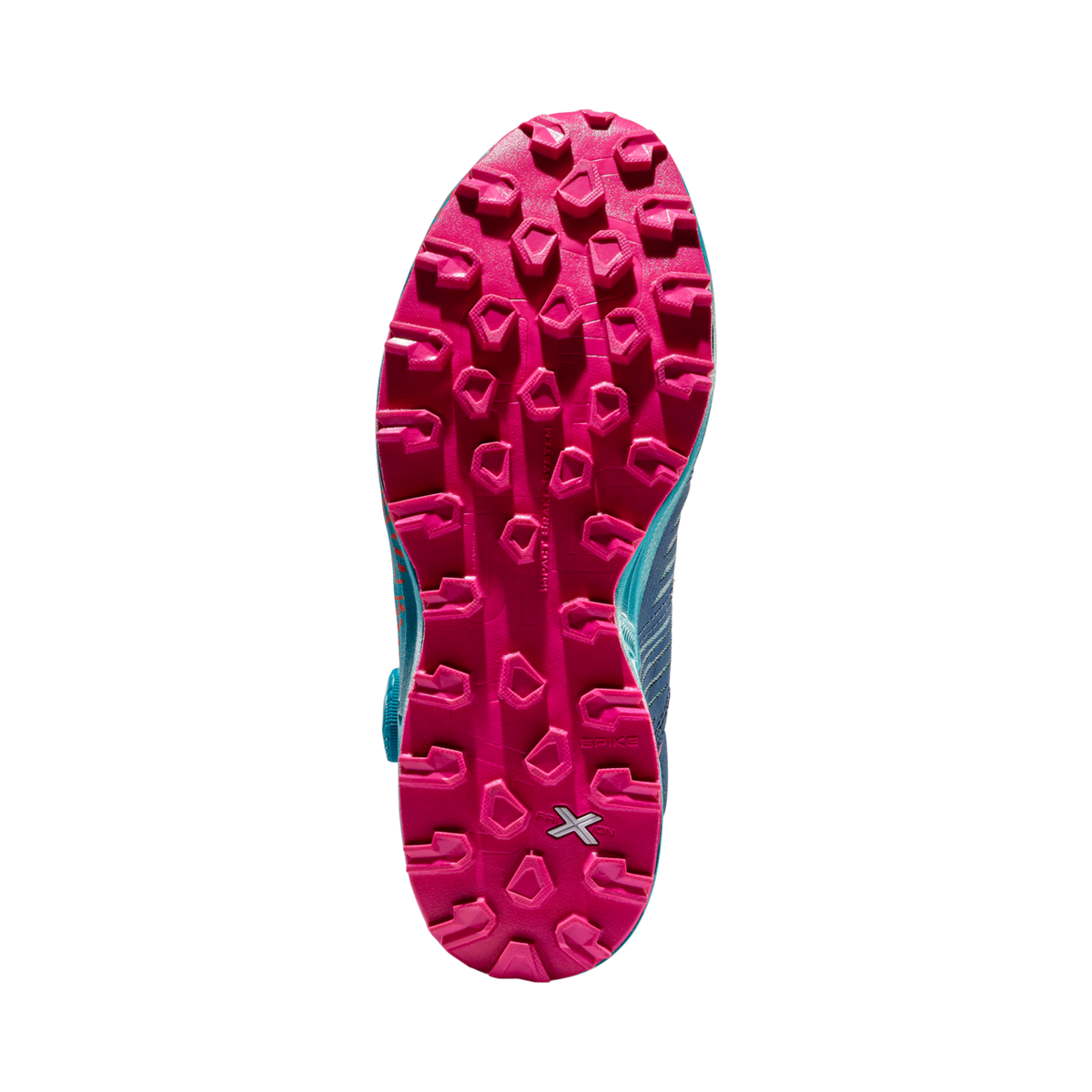 Die mud-ground-Außensohle aus der klebrigen FriXion White-Mischung bietet sehr guten Halt auf weichem und schlammigem Untergrund. Bei Bedarf lassen sich AT Grip Spike-Nägel integrieren, um bei eisigen Bedingungen noch mehr Traktion zu bekommen.