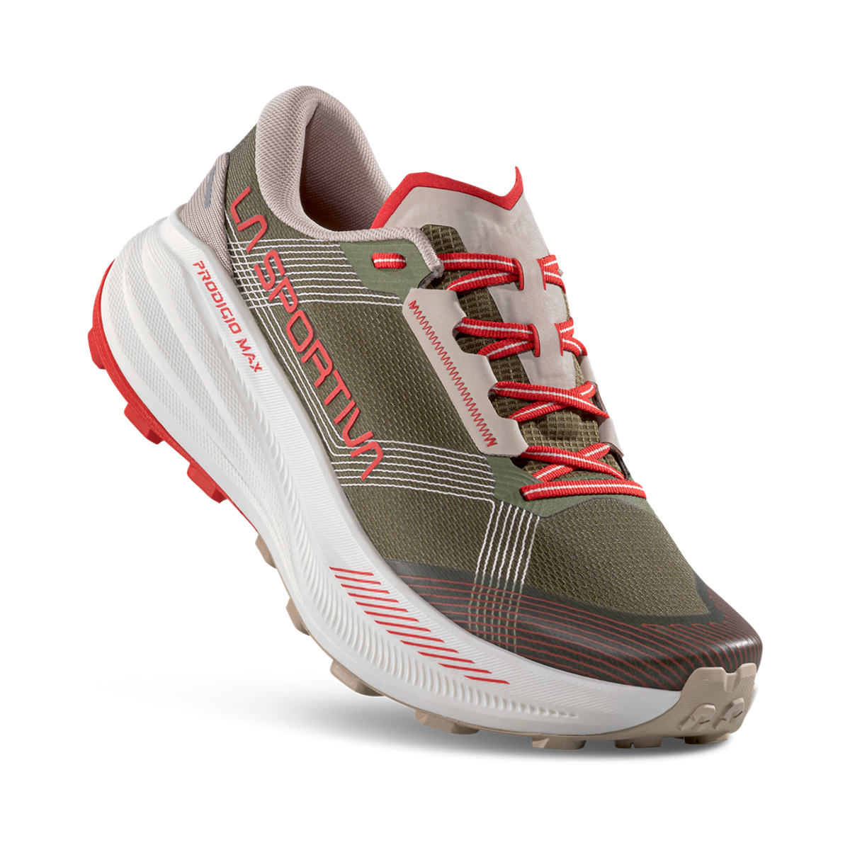Der Prodigio Max Woman ist ein speziell für Ultra-Läuferinnen entwickelter Mountainrunning-Schuh, der maximale Dämpfung, Komfort, Schutz und Stabilität über mittlere und sehr lange Strecken bietet. Mit robuster Konstruktion und langer Haltbarkeit ist er gemacht für anspruchsvolle Trail-Rennen und lange Bergtouren.