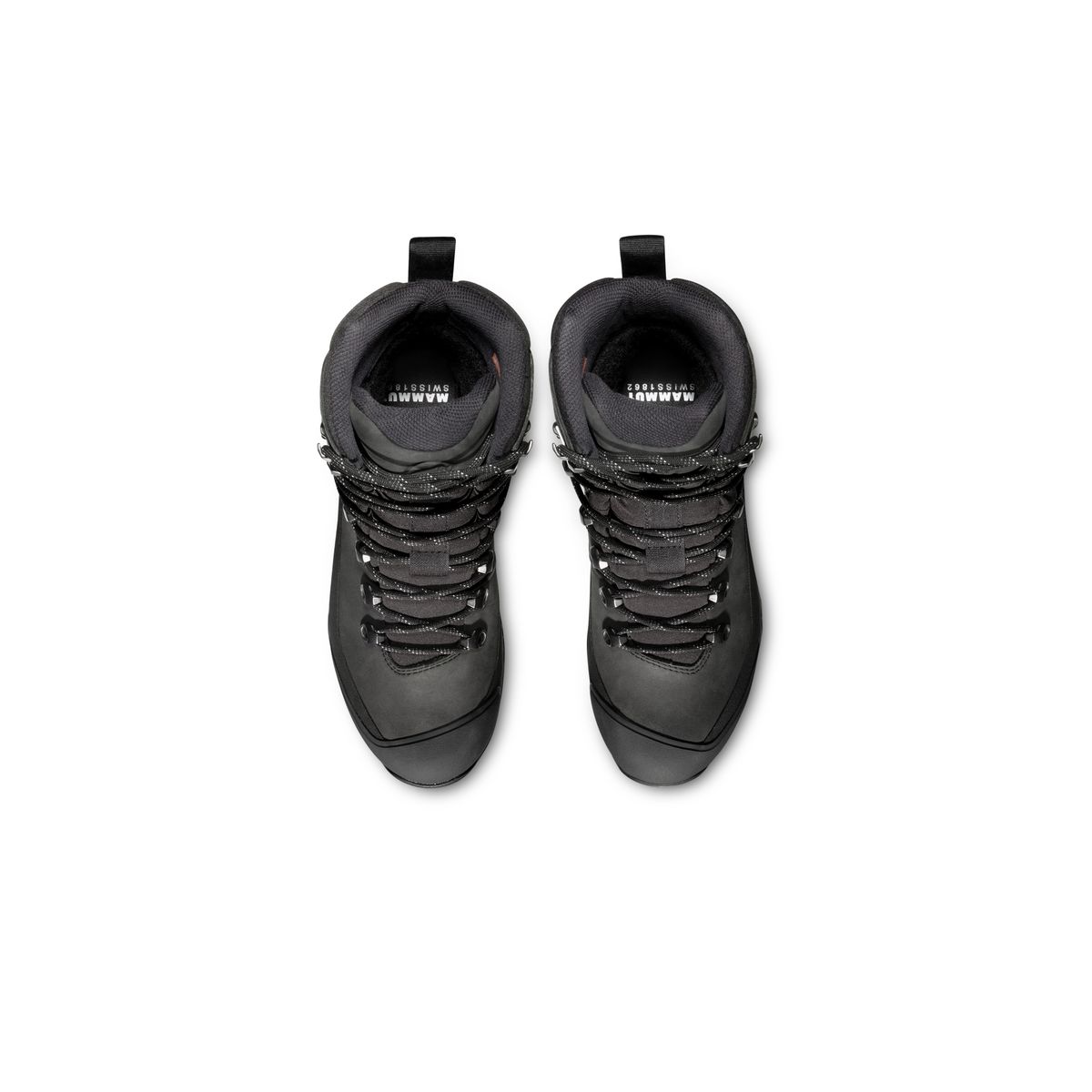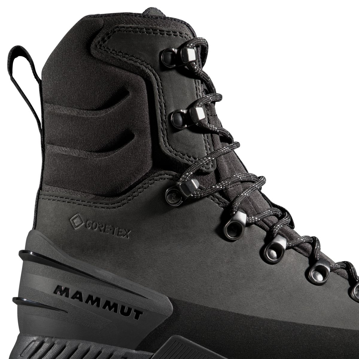 Hersteller: Mammut, Artikelnummer: 3030-05430. Sohle: Vibram 4 Trek mit EVA-Wedge, oberes Material: Leder und Textil, Innenfutter: GORE-TEX Footwear. Schafthöhe: hoch; Gewicht: ca. 600 g (UK 5.5). Geeignet für: Wandern, winterliche Trails und Schneetouren.