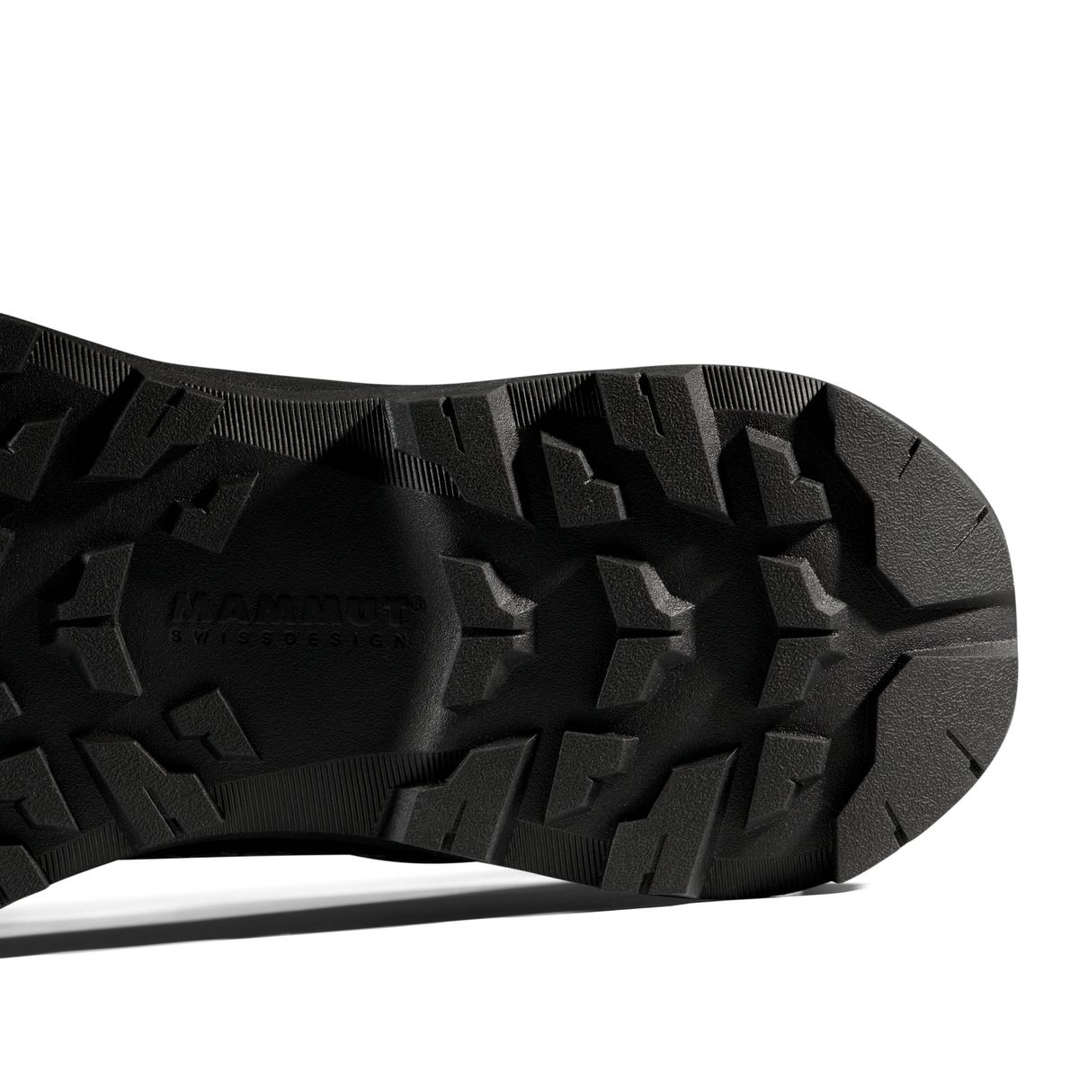 Die Mammut Swiss-Design-Außensohle liefert zuverlässigen Grip, auch bei tiefen Temperaturen und wechselndem Untergrund. Die hohe Sohlenhöhe verbessert Stabilität und schützt vor unebenem Gelände, während die langlebige Laufsohle die Lebensdauer erhöht.