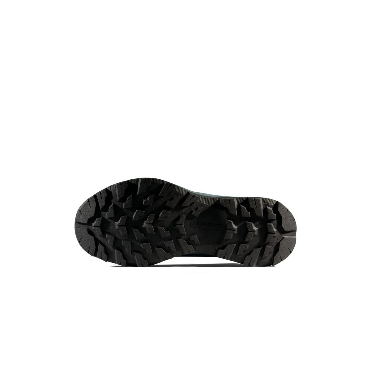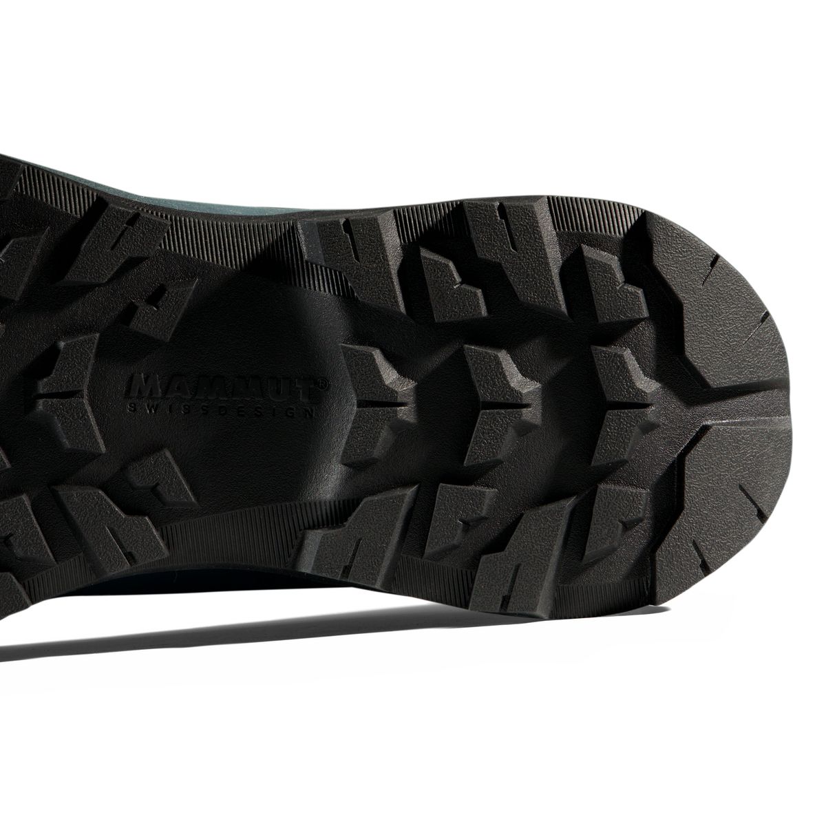 Die langlebige Gummisohle bietet langlebigen Schutz und Traktion, die speziell auf Wanderbedingungen abgestimmt ist. Die Kombination aus Mammut Swiss-Design-Sohle und hochdämpfendem Schaum sorgt für eine ausgewogene Balance aus Grip und Komfort.
