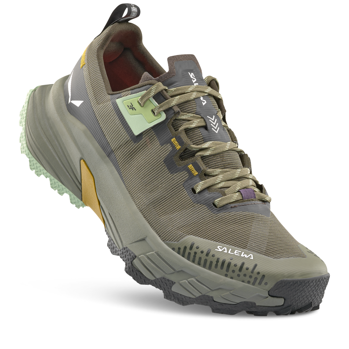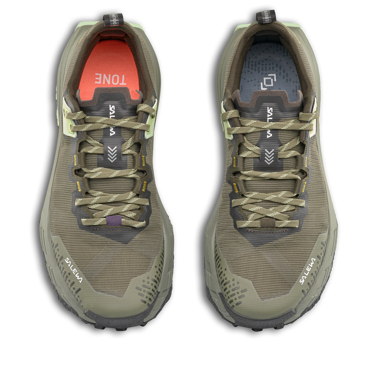 Der Schuh hat eine reguläre, breite Passform und ein Salewa Fußbett aus recyceltem Material mit doppelter Festigkeit für zusätzlichen Komfort und Langzeitstabilität. Die hohe Belüftung (Level 5) hält deine Füße frisch, während das geringe Wärmelevel (Level 1) den Schuh ideal für wärmere Tage macht.