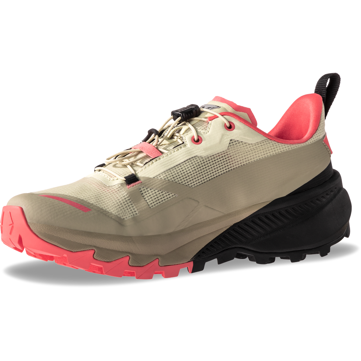 Der Traverse 2 W von Dynafit vereint Trailrunning-Agilität mit alpiner Robustheit und ist speziell für Frauen konzipiert. Mit einem Gewicht von nur 280 g (pro Schuh) erhältst du einen leichten Begleiter für anspruchsvolle Touren und Multisport-Einsätze.