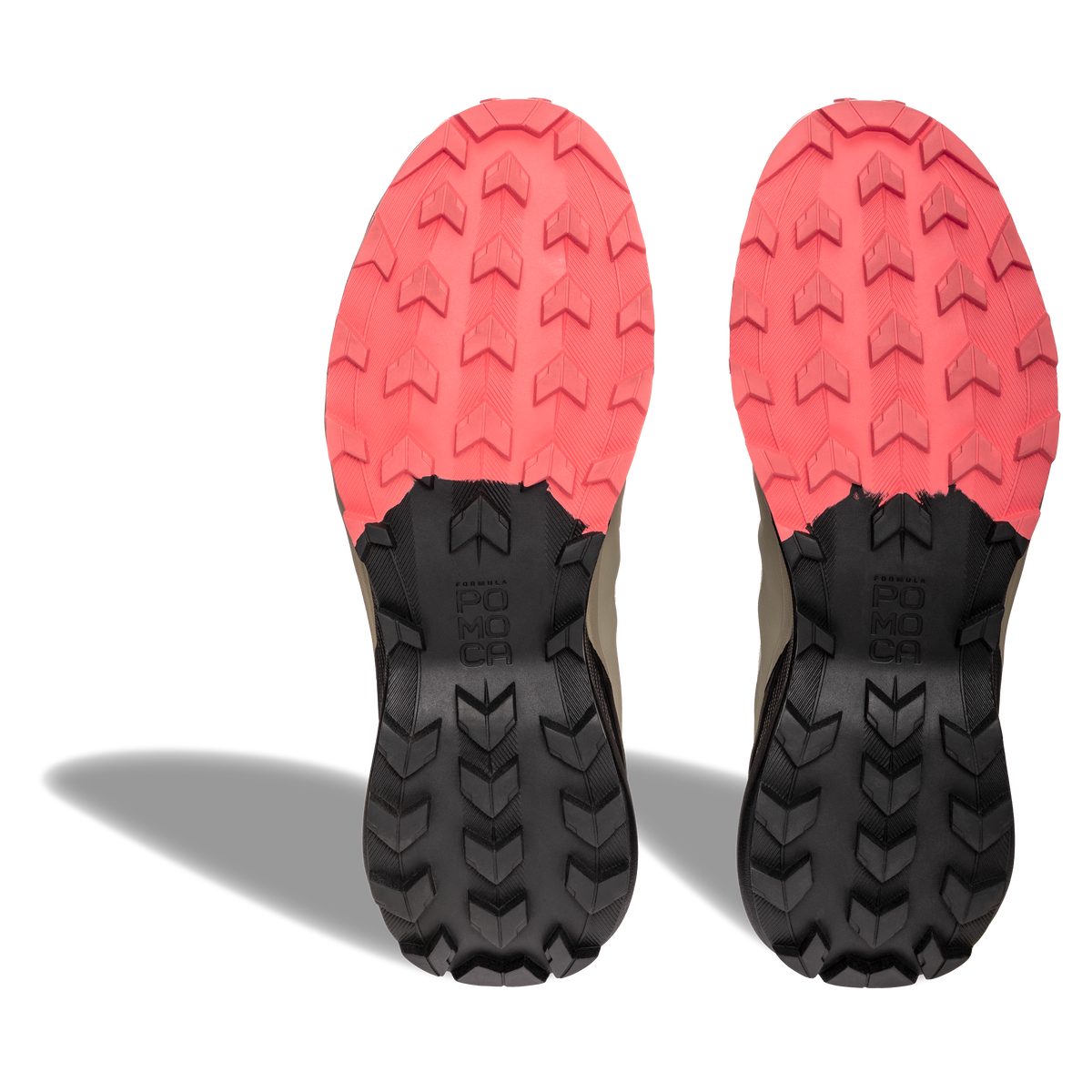Die POMOCA-Außensohle sorgt für exzellenten Grip auf weichem und schlammigem Untergrund; die 6 mm Stollen geben dir sicheren Halt bei wechselnden Bedingungen. Der 6 mm Sprengung sorgt für ein direktes Bodengefühl und fördert ein dynamisches Abrollverhalten.
