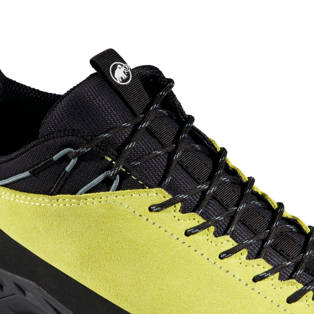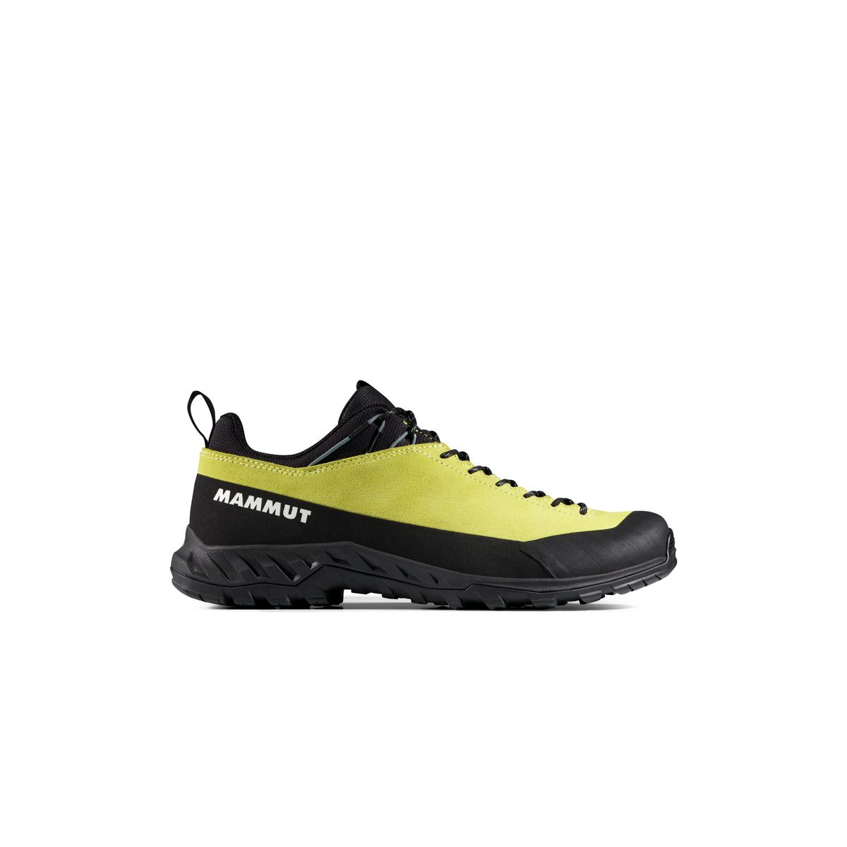 Das Obermaterial besteht aus strapazierfähigem Veloursleder, nachhaltig in Italien gegerbt (Mastrotto), und sorgt für Atmungsaktivität sowie Langlebigkeit. Mammut setzt auf PFC-freie DWR-Imprägnierungen, um umweltbelastende perfluorierte Chemikalien zu vermeiden.