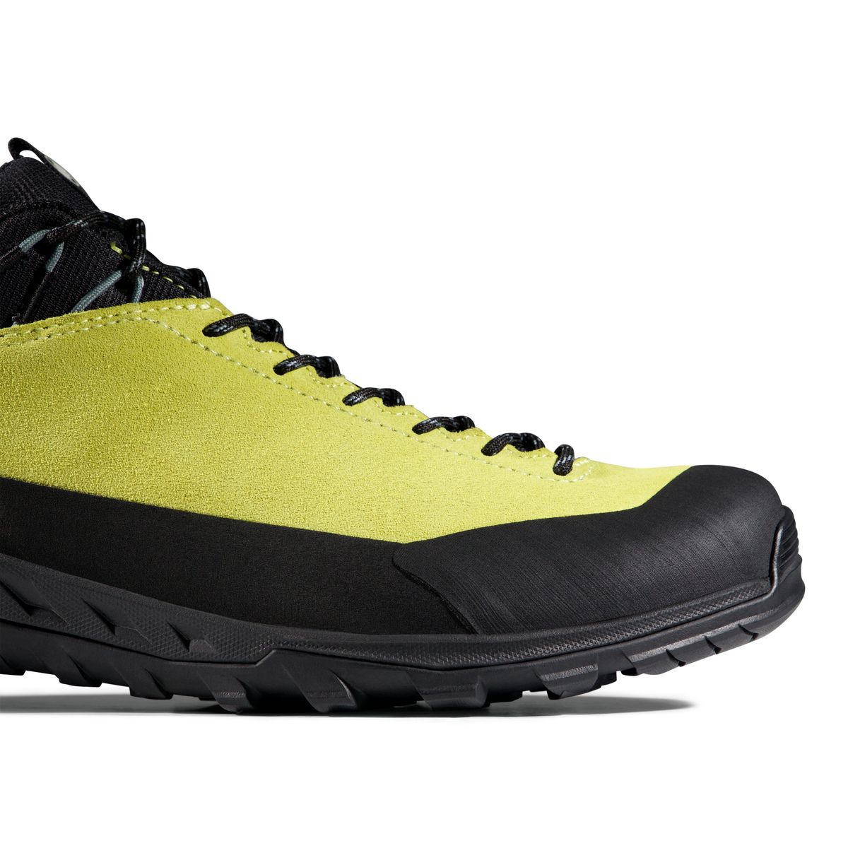 Die Vibram XS TREK EVO-Außensohle mit Traction Lug und spezieller Kletterzone bietet hervorragenden Grip - auch auf nassen oder felsigen Untergründen. Der hochgezogene Gummirand und die robuste Zehenkappe schützen das Material und erhöhen die Standfestigkeit bei Kontakt mit scharfem Fels.
