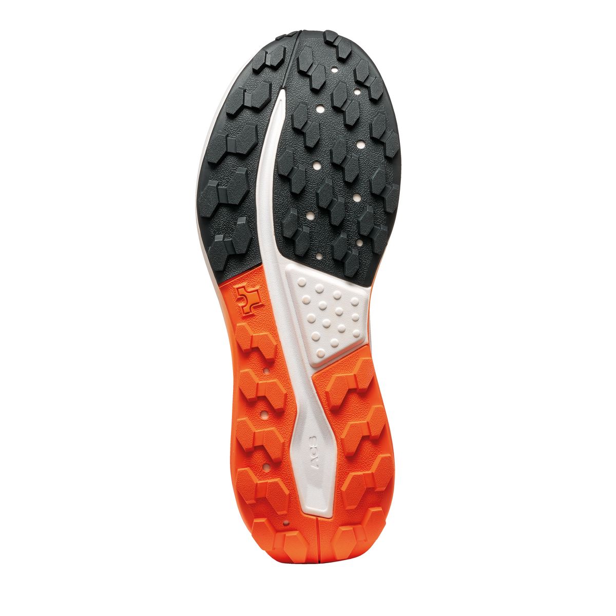 Die durchgehende Zwischensohle aus EVA + 20% PEBA bietet weiche, reaktionsfreudige Dämpfung und Komfort über lange Strecken. Das integrierte Adaptive Control System (ACS) lässt die Zwischensohle auf unterschiedlichen Untergründen flexibel reagieren, sodass du stabil und souverän unterwegs bist.