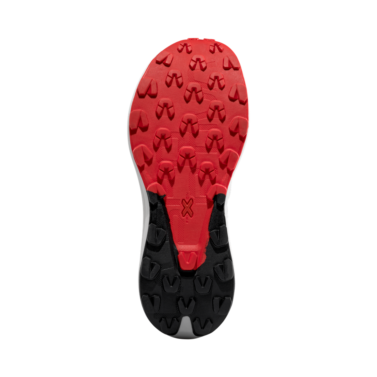 Die bi-komponentige FriXion Red-Außensohle kombiniert langlebige Materialien in der Ferse mit maximalem Grip im mittleren und vorderen Bereich. Eine große Auflagefläche und ein mittlerer Rocker verbessern die Stabilität und Abrollbewegung auf wechselndem Terrain.