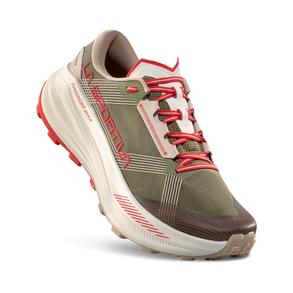 Die Prodigio Max wurde speziell für Ultra-Trail-Enthusiasten entwickelt, die auf mittleren und langen Distanzen maximalen Komfort, Dämpfung und Schutz suchen. Sie eignet sich für anspruchsvolle Bergtouren und Extremrennen wie den Tor des Géants, Swiss Peak oder Tahoe 200.