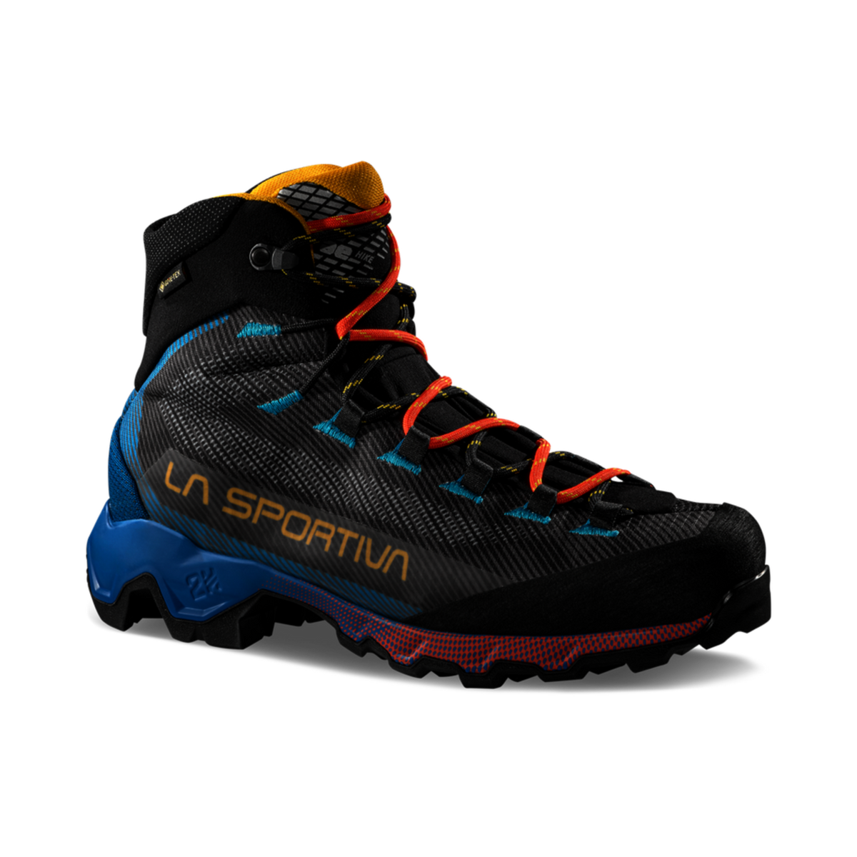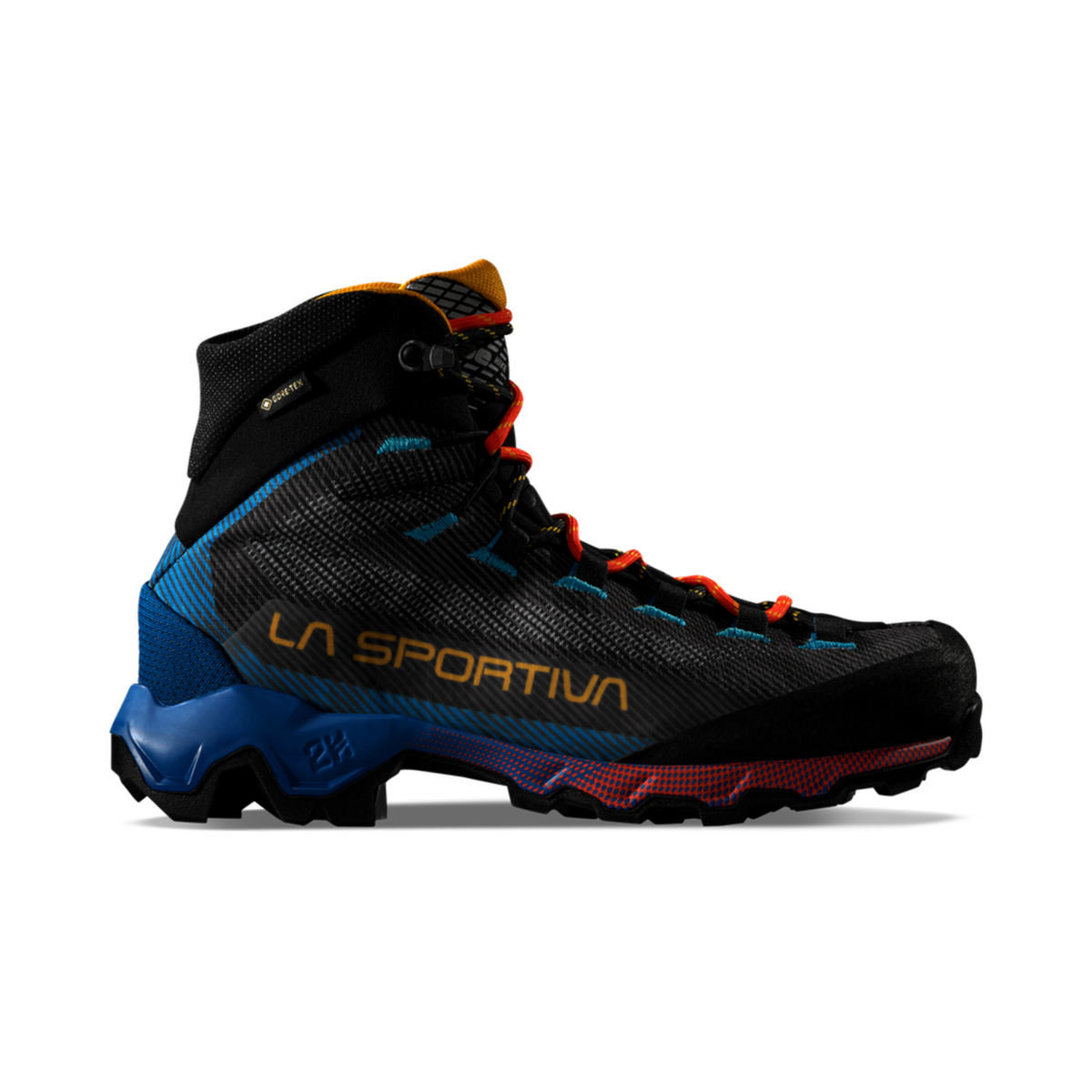 - Nachhaltigkeit: 100% recycled laces, GORE-TEX Extended Comfort lining Bluesign Approved, La Sportiva Mountain Hiking 5mm footbed with 10% made