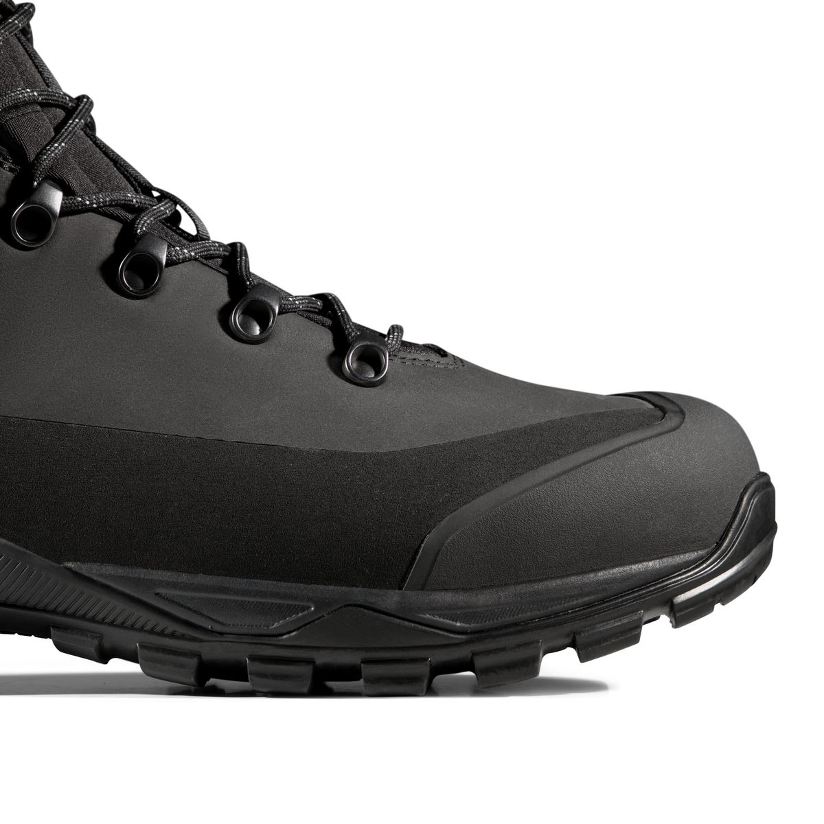Der Schuh bietet absoluten Wetterschutz durch eine verklebte Konstruktion und eine PFC?freie GORE?TEX?Membran kombiniert mit zusätzlichem PU-Schutz. Die gezwickte Machart sorgt für langlebige Stabilität, während der Geröllschutzrand aus Gummi die Zehen und Seiten vor Steinen schützt.