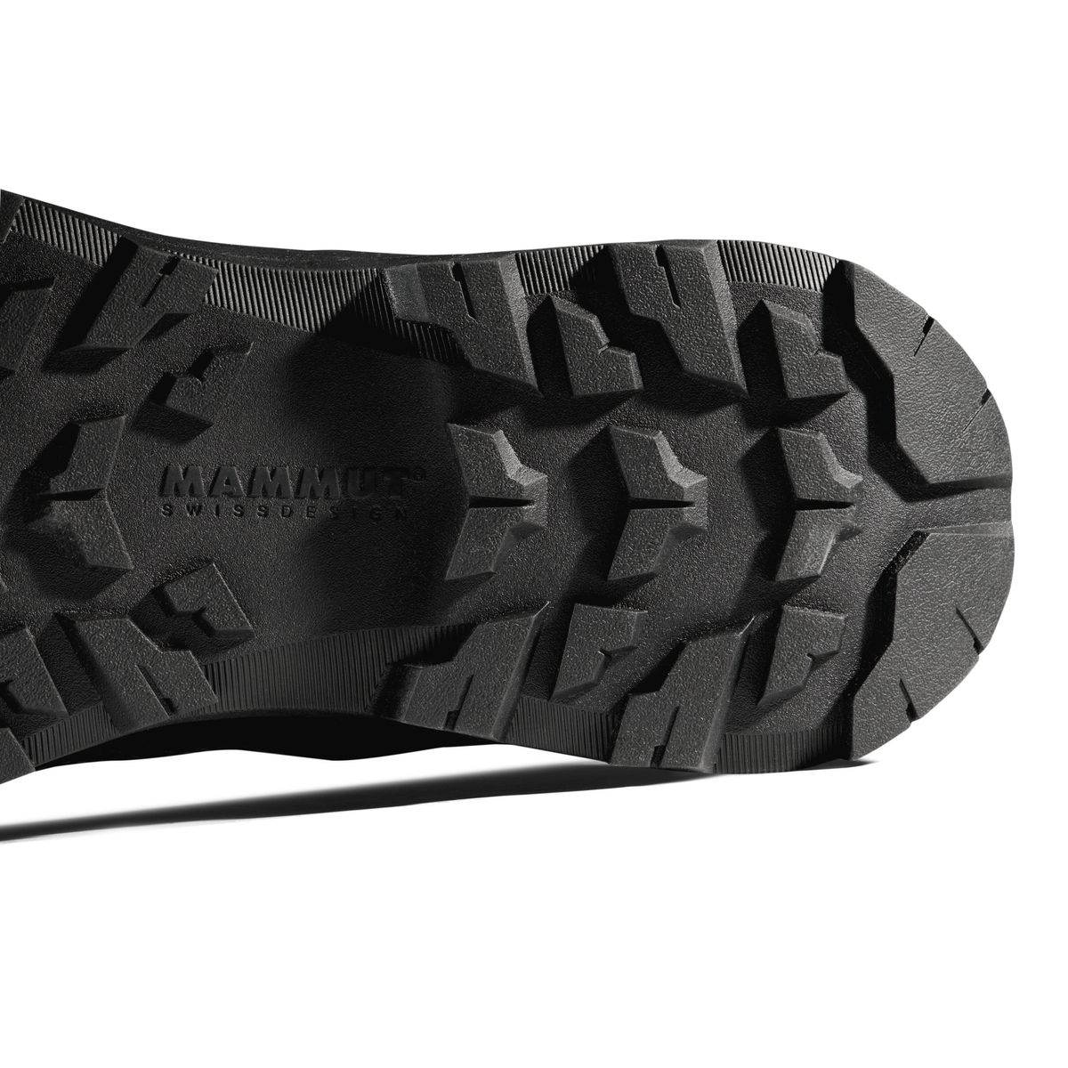 Die Mammut Swiss-Design Außensohle bietet verlässlichen Grip, auch bei kalten Temperaturen und auf nassem Untergrund. In Kombination mit dem reaktiven EVA-Schaum ergibt sich ein präzises, dennoch komfortables Laufgefühl.