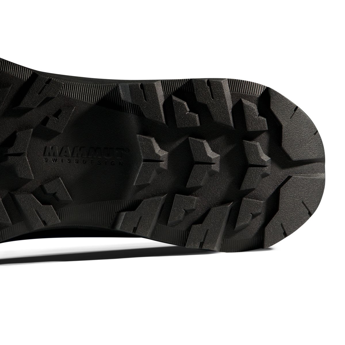 Die Mammut Swiss-Design-Außensohle bietet zuverlässigen Grip auch bei niedrigen Temperaturen und in unterschiedlichem Gelände. Das langlebige Gummi sorgt für Langlebigkeit und stabile Traktion auf Schotter, Wurzeln und nassem Untergrund.