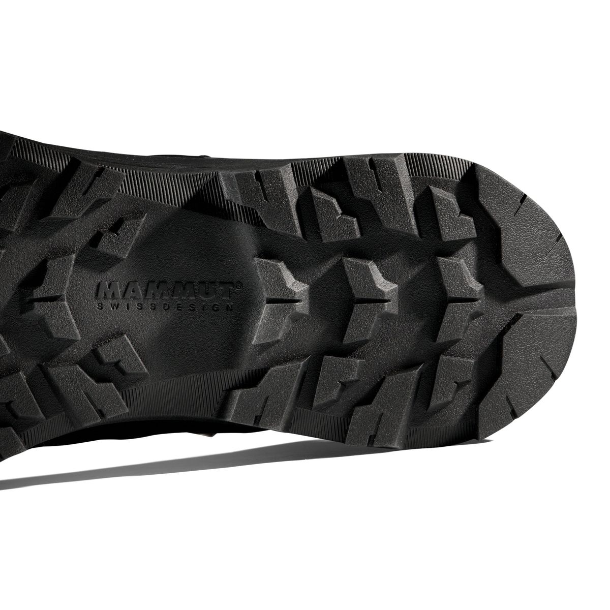 Die Mammut Swiss-Design-Außensohle bietet hervorragenden Grip, auch bei niedrigen Temperaturen und auf feuchten Untergründen. Die hohe Sohlenhöhe und das durchdachte Profil sorgen für Stabilität und zuverlässige Traktion in unterschiedlichem Gelände.