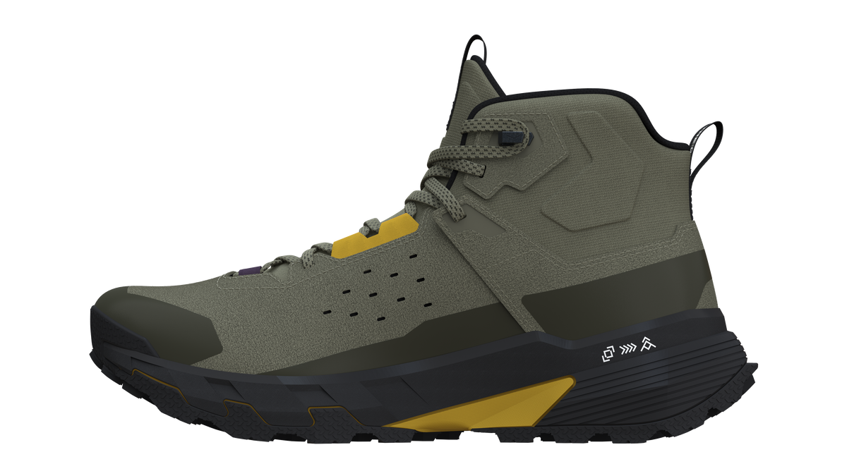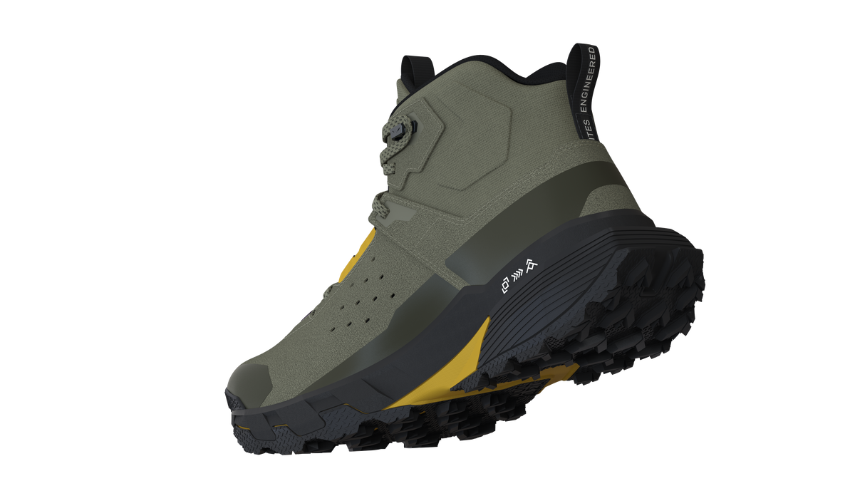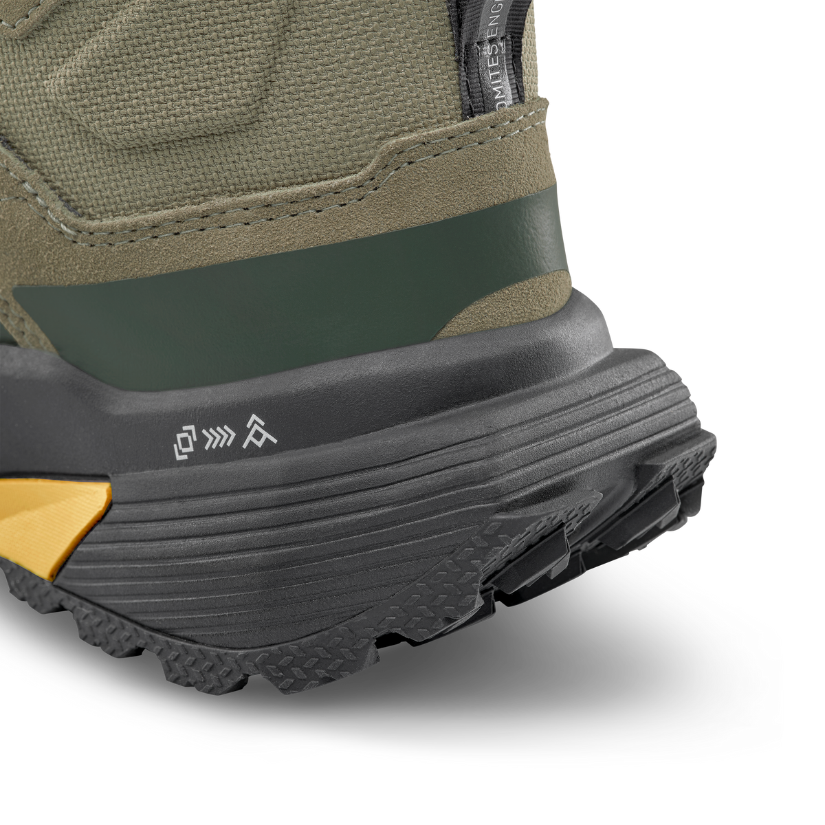 Seine Mid-Cut-Konstruktion gibt dir zusätzlichen Knöchelschutz und Stabilität in unwegsamem Gelände, während das geringe Gewicht schnelle Übergänge und lange Touren erleichtert.