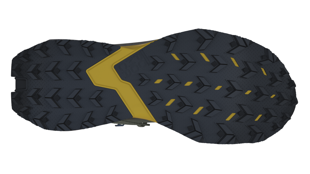 Die Pomoca Speed Hiker 2 Außensohle bietet ausgezeichneten Grip auf felsigem, losem oder nassem Untergrund. Das spezielle Profil sorgt für sicheren Bodenkontakt und optimale Traktion bei jedem Schritt.