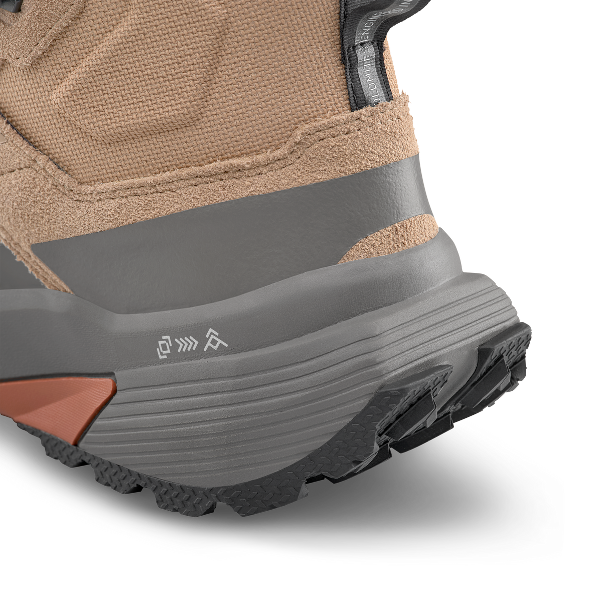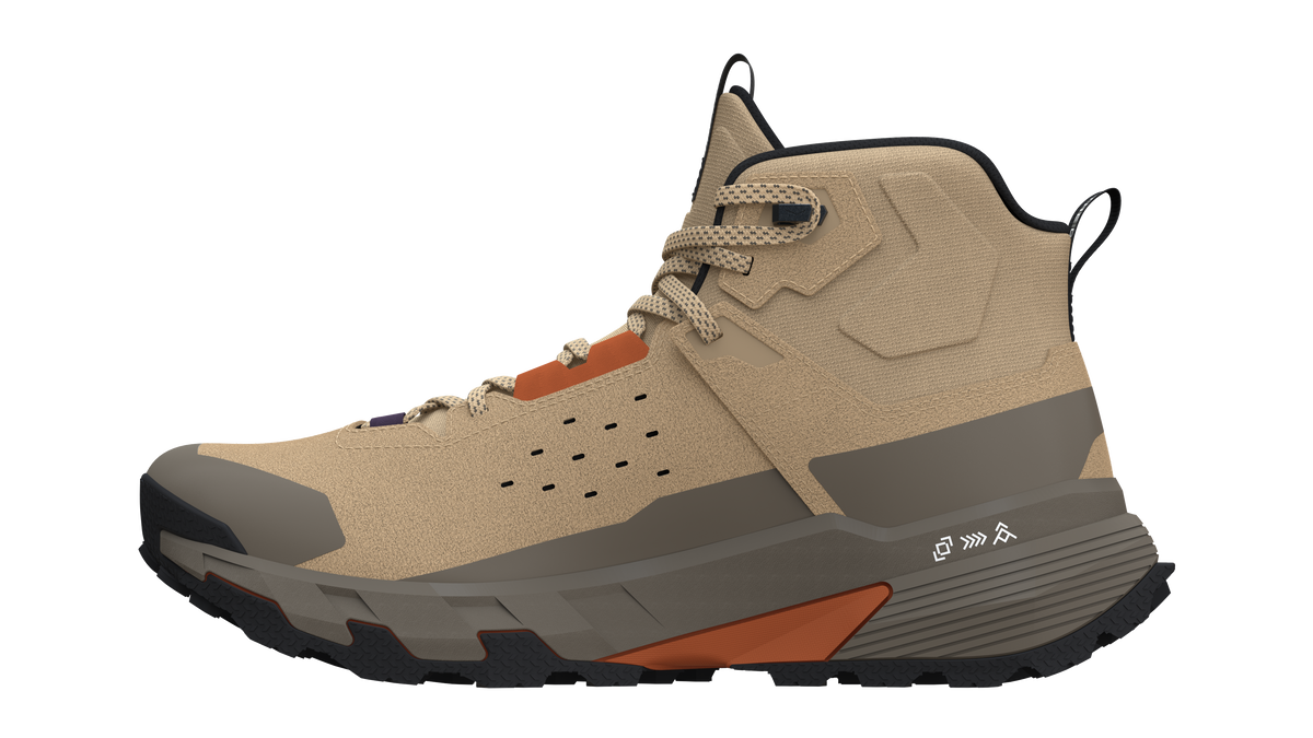 Seine Mid-Cut-Konstruktion gibt dir zusätzlichen Knöchelschutz und Stabilität in unwegsamem Gelände, während das geringe Gewicht schnelle Übergänge und lange Touren erleichtert.