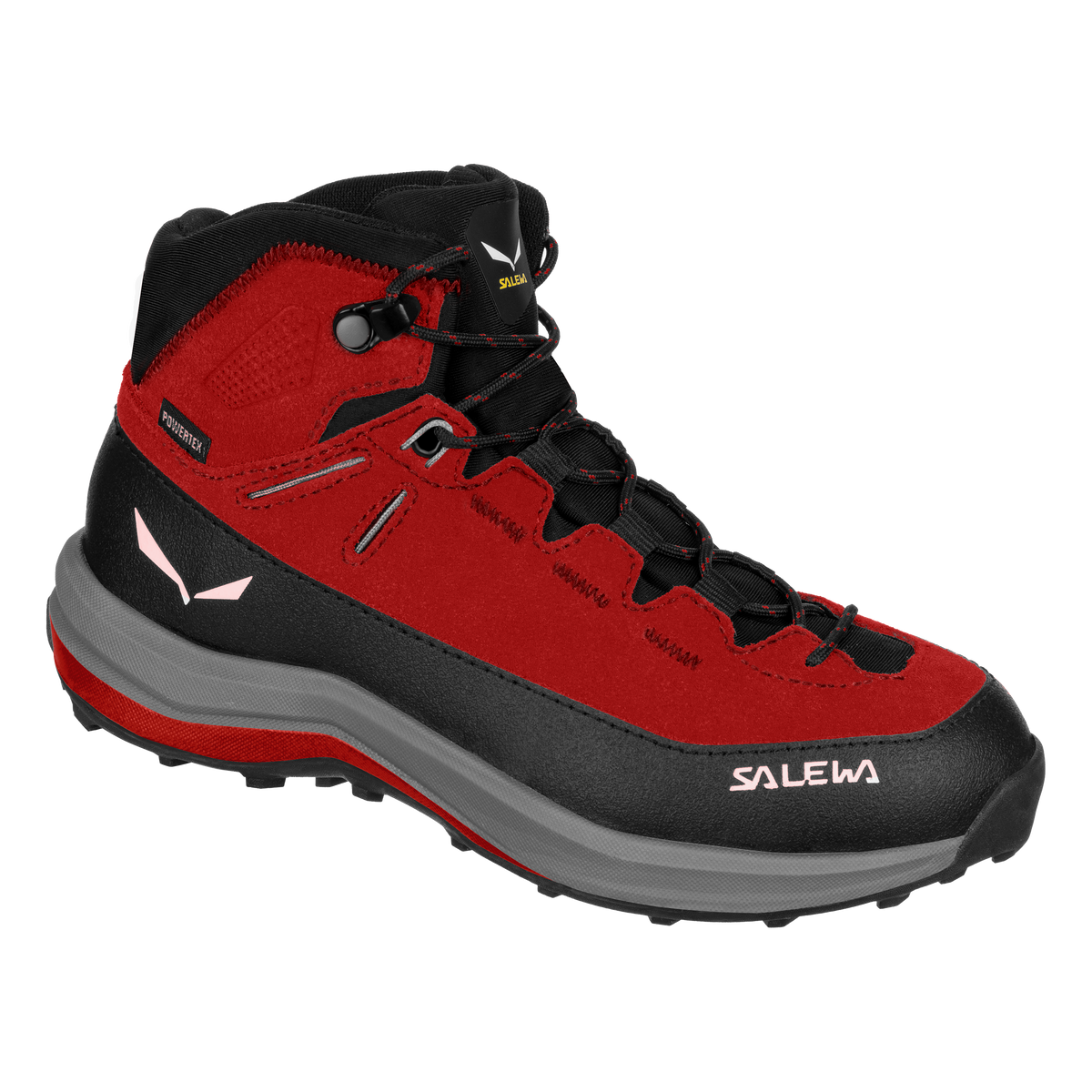3F-System, Climbing Lacing, Flex Collar, Schützender Rand, POMOCA® S Path, Pomoca Aussensohle, Obermaterial: Wildleder mit einer Stärke von 1,2-1,4 mm, Schützender PU Rand, 3F-System mit Kevlar®-Schnüren, Futter: PowerTex: wasserdichte und atmungsaktive PFC-freie Membran , EVA, Außensohle: Pomoca Junior Hike, Salewa footbed, Neues Produkt, Kind, Unisex, Trekking & Hiking, Einzelschuhgewicht: 255 g, 11 mm (Heel Stack Height 30 mm / Toe Stack Height 19 mm), Dämpfung: Level 2, warm: Level 2, Belüftung: Level 2, Passform: Standard, Gemischtes alpines Gelände: Level 2, Matsch/Gras: Level 1, Schnee/Eis: Level 1, Felsige/technische Wege: Level 1, Wandern: Wandern, Wandern: Wandern